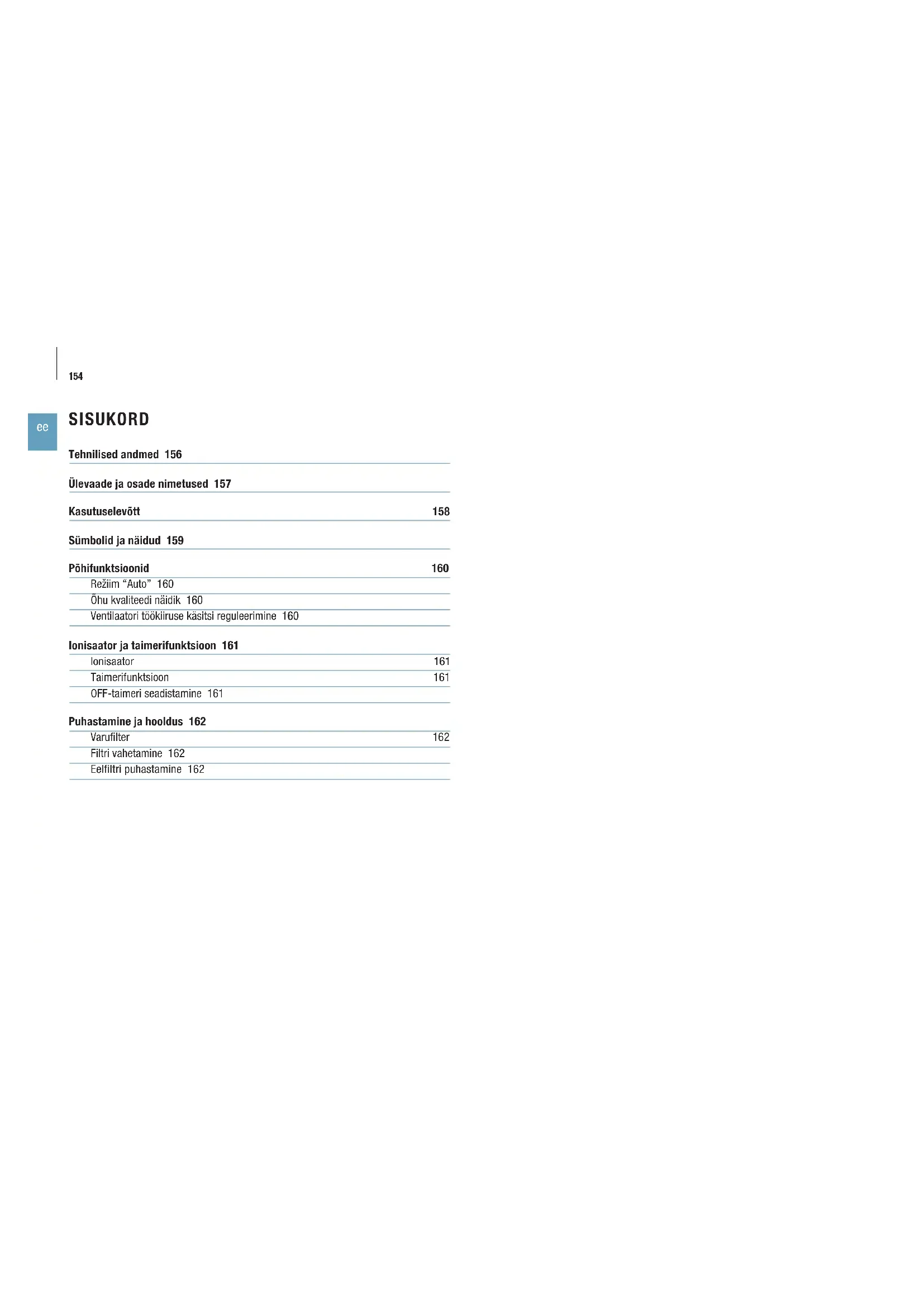 Filti toovaru onloppenud, kui suttib naidik "Filter". juhul tuleb optimaalse ohopuhasusvöime sailitamiseks filter vahetada.