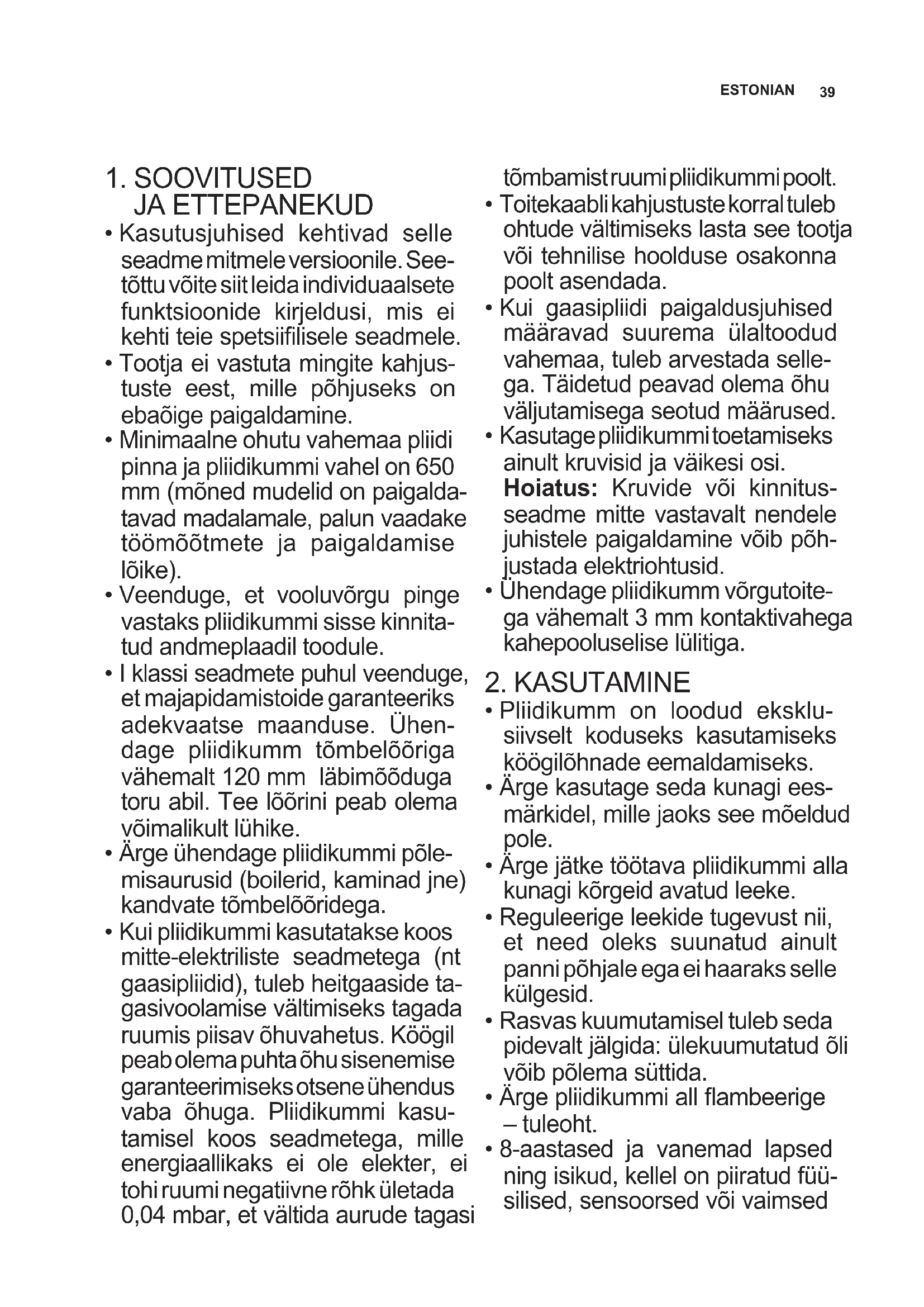 - Ärge pliidikummi all ambeerige – tuleoht.