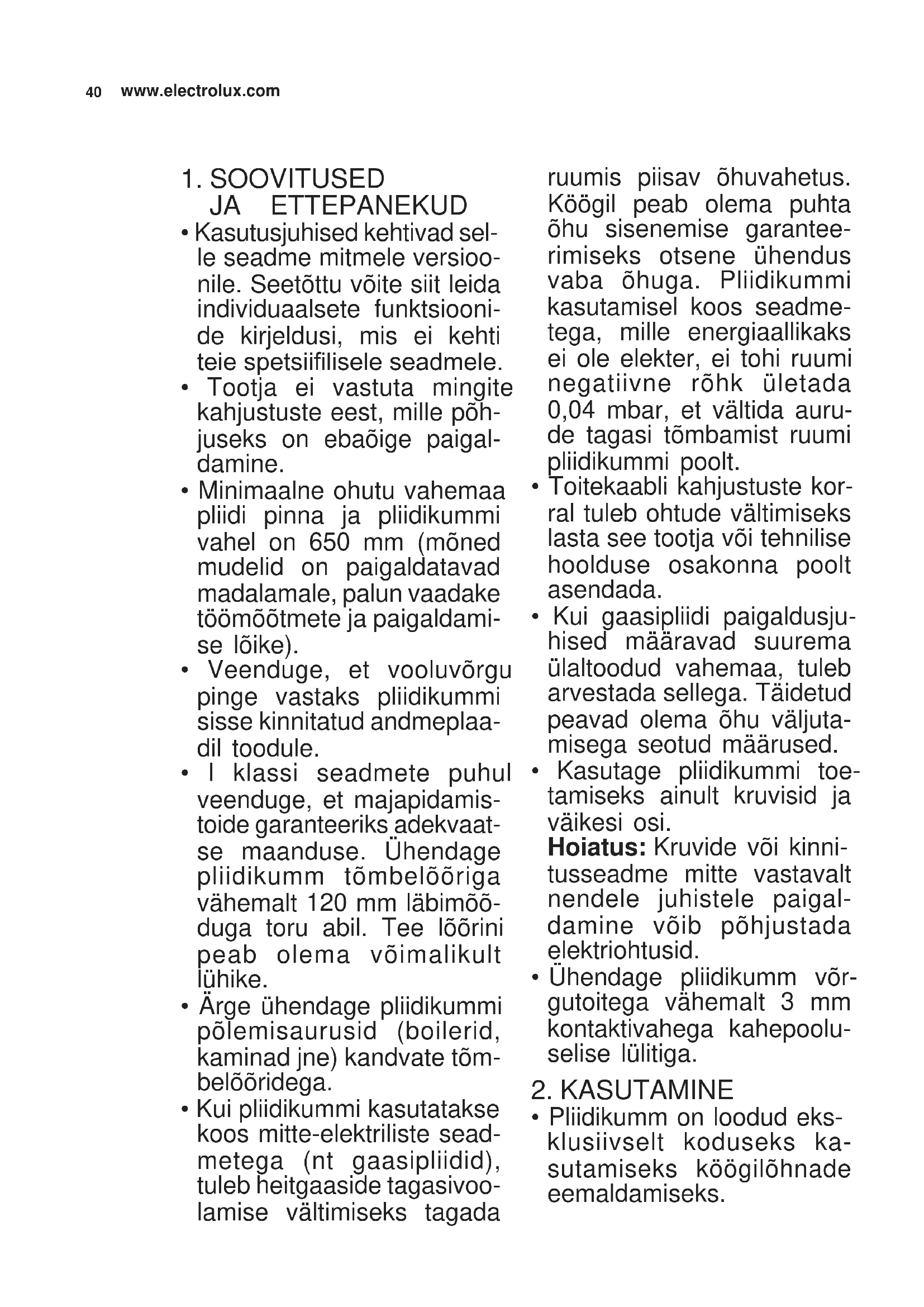 - Ärge ühendage pliidikummi põlemisaurusid (boilerid, kaminad jne) kandvate tõm- belõõridega.