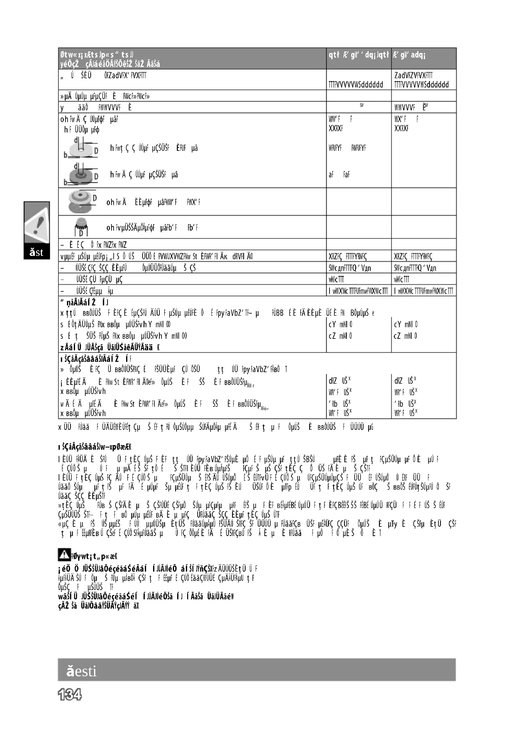 Tehnilised andmed, Spetsiaalsed turvajuhised, Kasutamine vastavalt otstarbele, EÜ Vastavusavaldus, Akud, Hooldus, Sümbolid Palun lugege läbi ja hoidke alal! Eesti