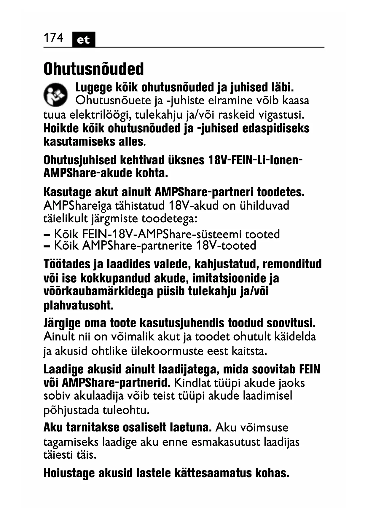 | Ohutus | Kandke kaitseprille, kindaid ja järgige ohutusjuhiseid |