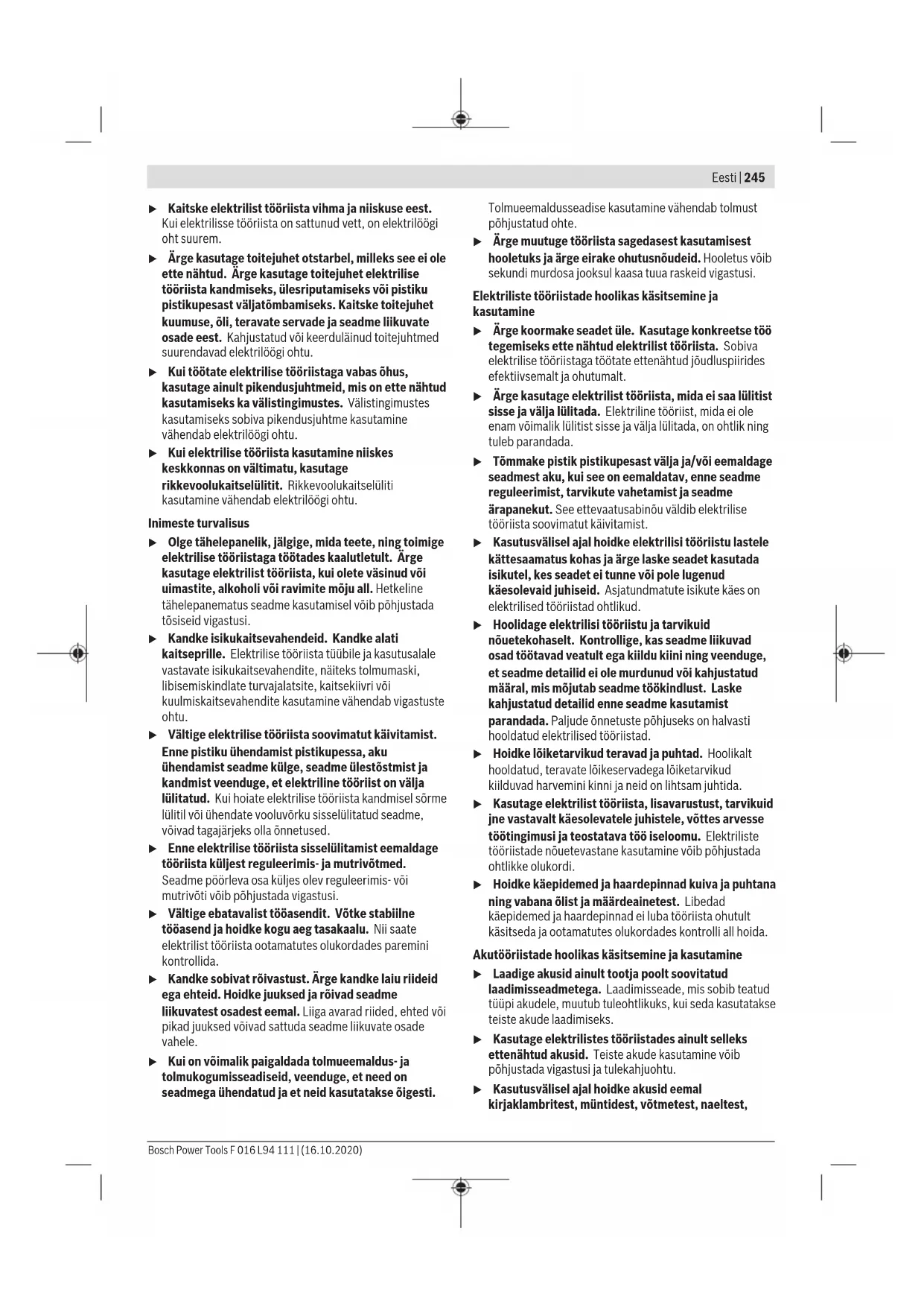ja hoiustamisel °C -20... +50 F 016 L94 111 | (16.10.2020) Bosch Power ToolsEesti | 249 Akuga hekikäärid EasyHedgeCut 18-45 Akutüüp PBA 18V...W-. 1,5 Ah, 2,0 Ah, 2,5 Ah, 3,0 Ah, 4,0 Ah, 5,0 Ah, 6,0 Ah A) sõltuvalt kasutatud akust B) piiratud võimsus temperatuuril <0°C Laadija AL 1810 CV AL 1815 CV AL 1830 CV AL 1880 CV Laadimisvool A 1,0 1,5 3,0 8,0 Laadimisaeg (tühja aku puhul) – Aku 1,5Ah min 94 63 33 27 – Aku 2,0Ah min 124 84 45 30 – Aku 2,5Ah min 154 105 60 36 – Aku 3,0Ah min 185 130 72 46 – Aku 4,0Ah min 244 168 95 35 – Aku 6,0Ah min 364 260 130 62 Kaal EPTA-menetluse 01:2014 järgi kg 0,17 0,38 0,40 0,60 Kaitseklass / II / II / II / II Andmed kehtivad nimipingel [U] 230V. Teistsuguste pingete ja kasutusriigis spetsiifiliste mudelite puhul võivad toodud andmed varieeruda. Müra-/vibratsiooniväärtused 3600H49 H.. Mürataseme väärtused on mõõdetud vastavalt EN 62841-4-2:2019 Seadme A-korrigeeritud müratase on üldjuhul: – Helirõhutase dB(A)