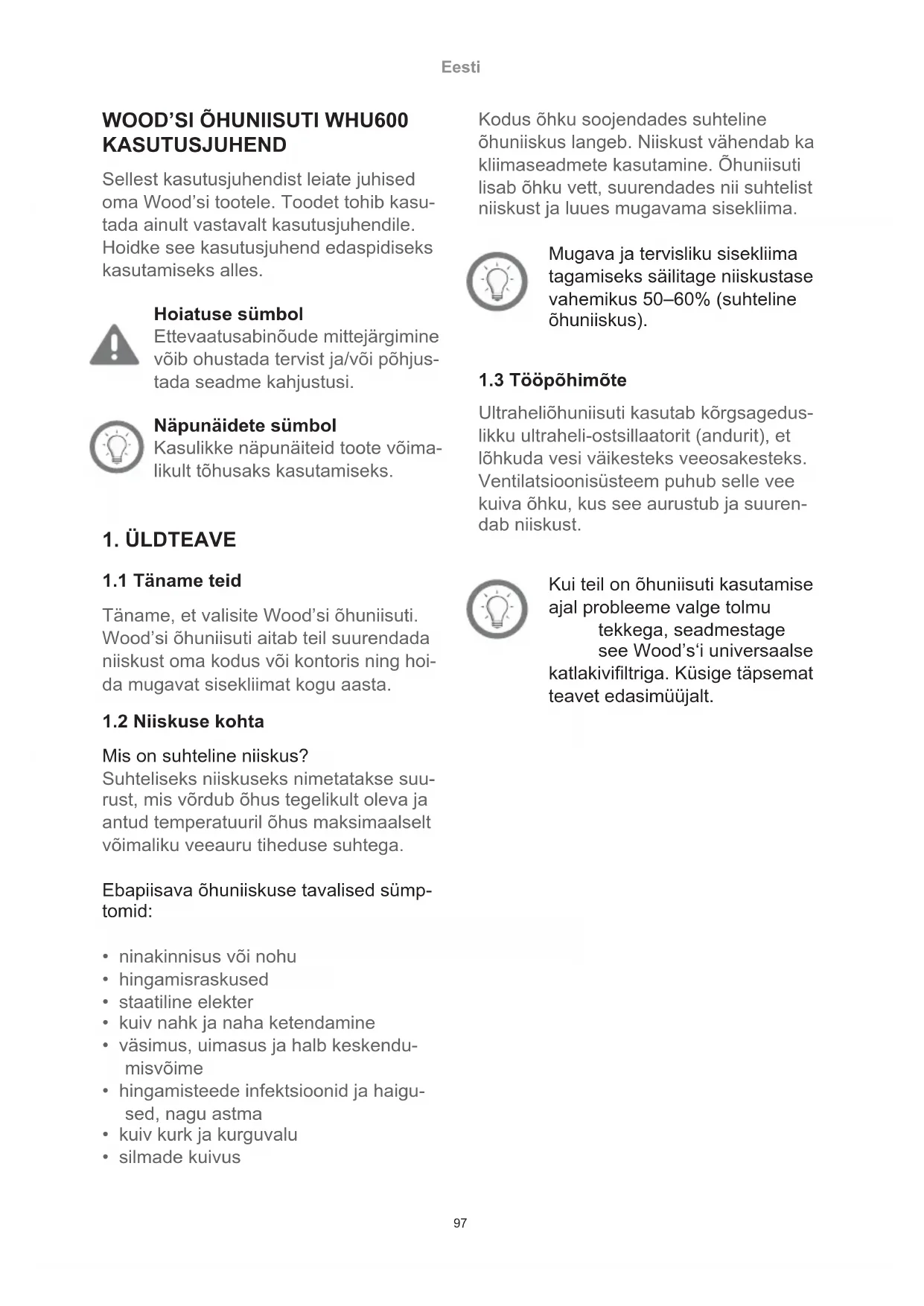 WHU600 - Õhuniisutaja WOOD'S - Tasuta kasutusjuhend