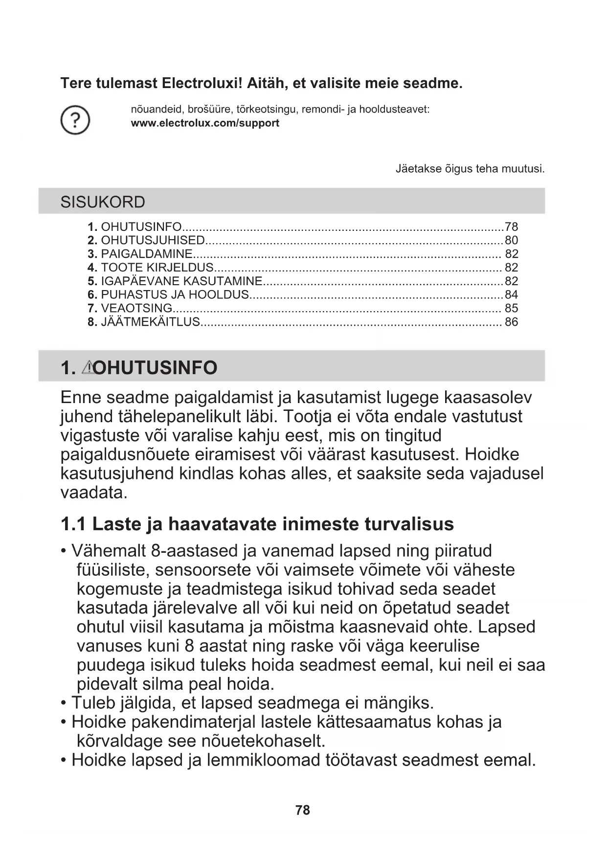 - Hoidke lapsed ja lemmikloomad töötavast seadmest eemal. 78• Lapsed ei tohi ilma järelvalveta seadet puhastada ega hooldustoiminguid läbi viia.
