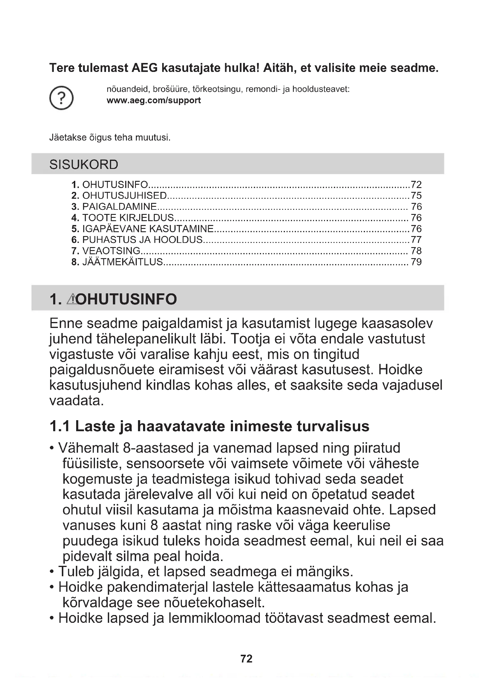 - Hoidke lapsed ja lemmikloomad töötavast seadmest eemal. 72• Lapsed ei tohi ilma järelvalveta seadet puhastada ega hooldustoiminguid läbi viia.