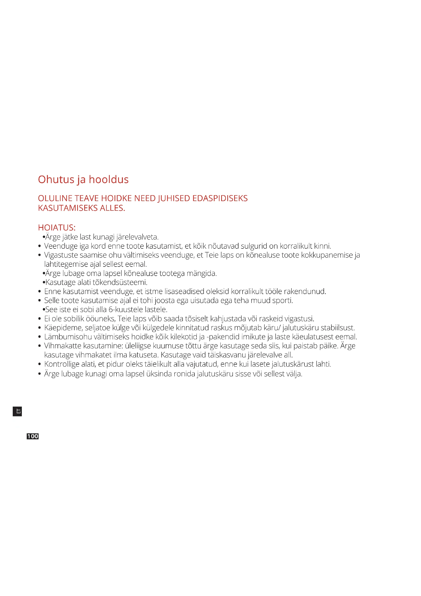 - Vigastuste saamise ohu vältimiseks veenduge, et Teie laps on kõnealuse toote kokkupanemise ja lahtitegemise ajal sellest eemal.