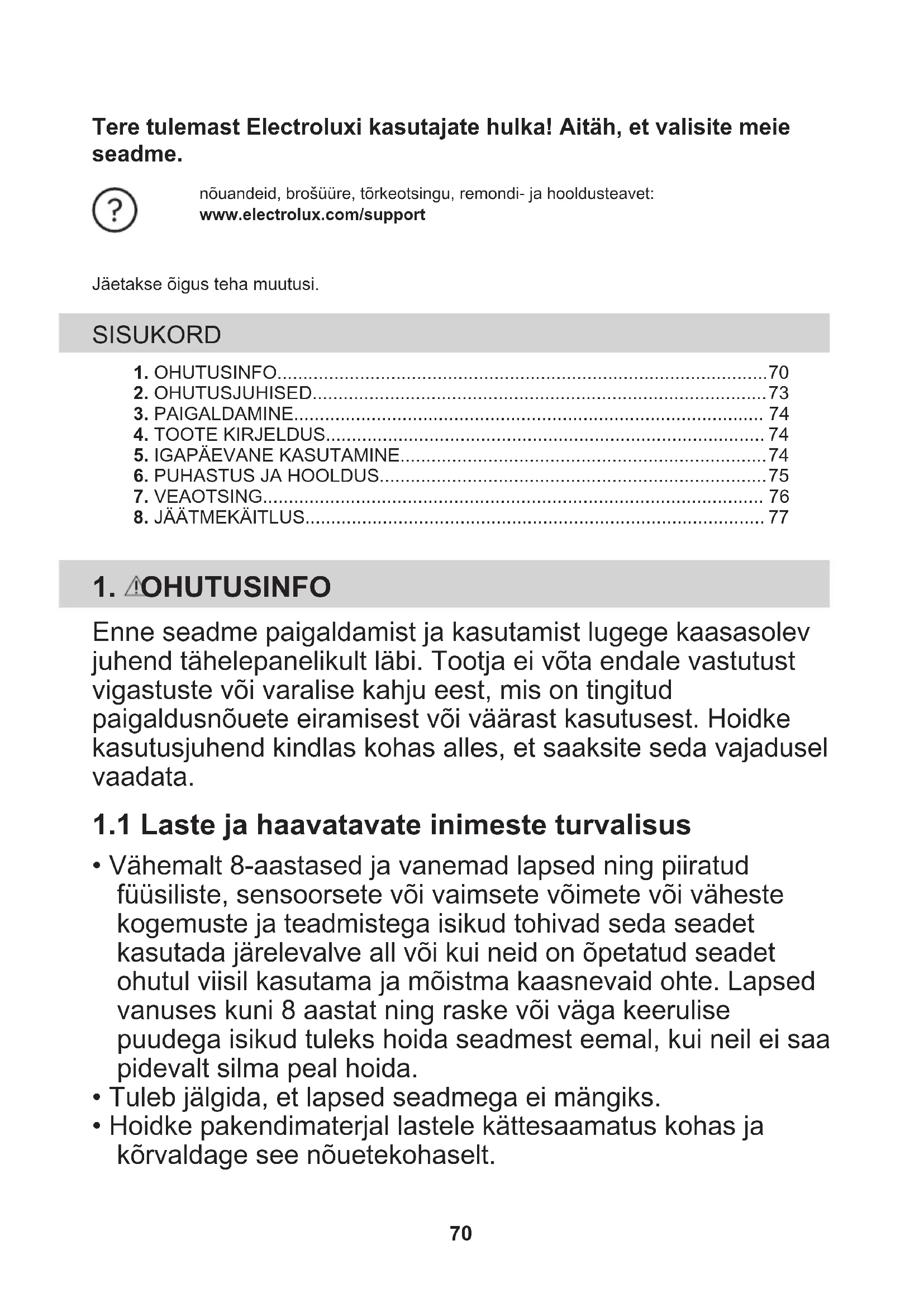- Hoidke pakendimaterjal lastele kättesaamatus kohas ja kõrvaldage see nõuetekohaselt. 70• Hoidke lapsed ja lemmikloomad töötavast seadmest eemal.