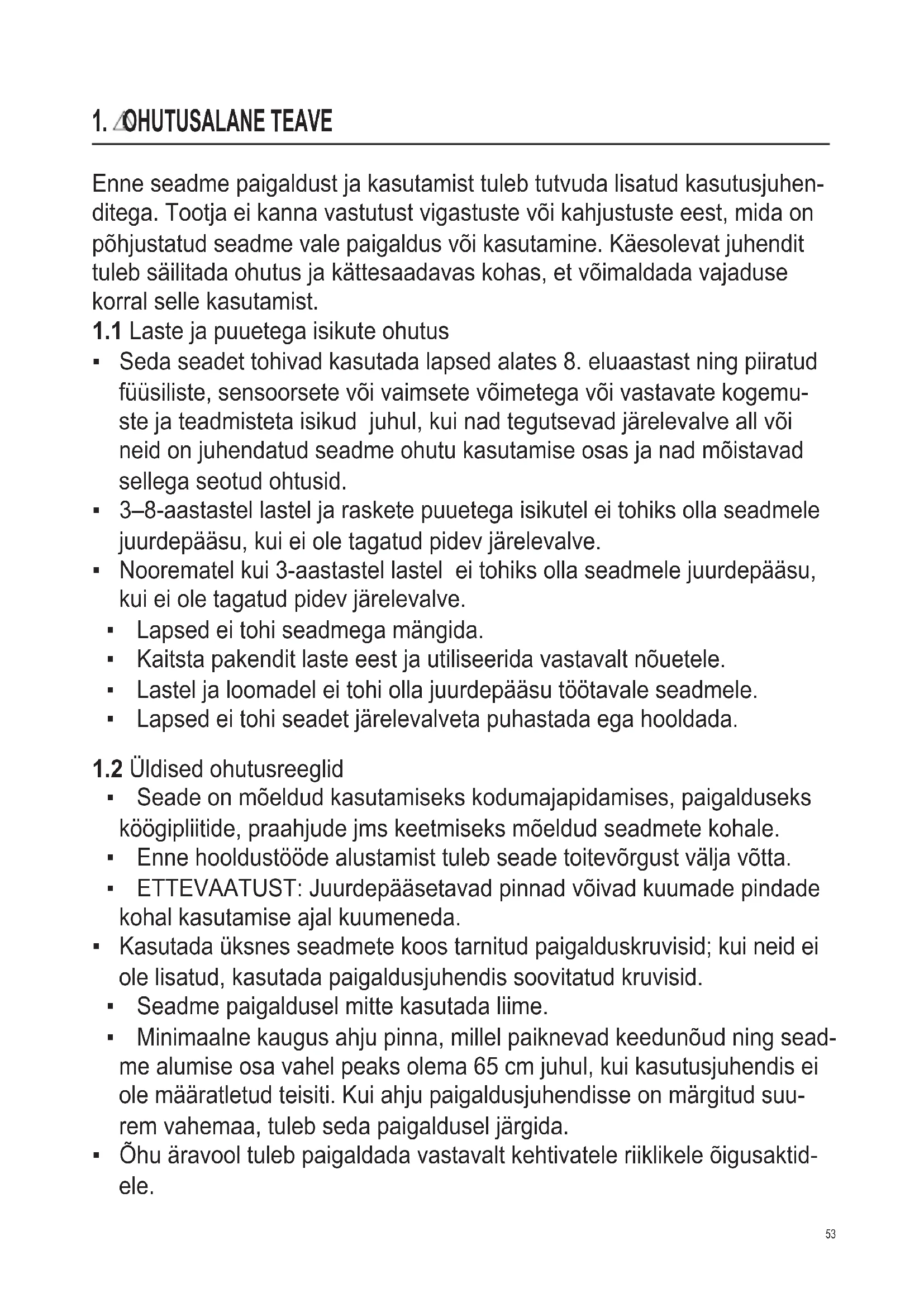 1.2 Üldised ohutusreeglid