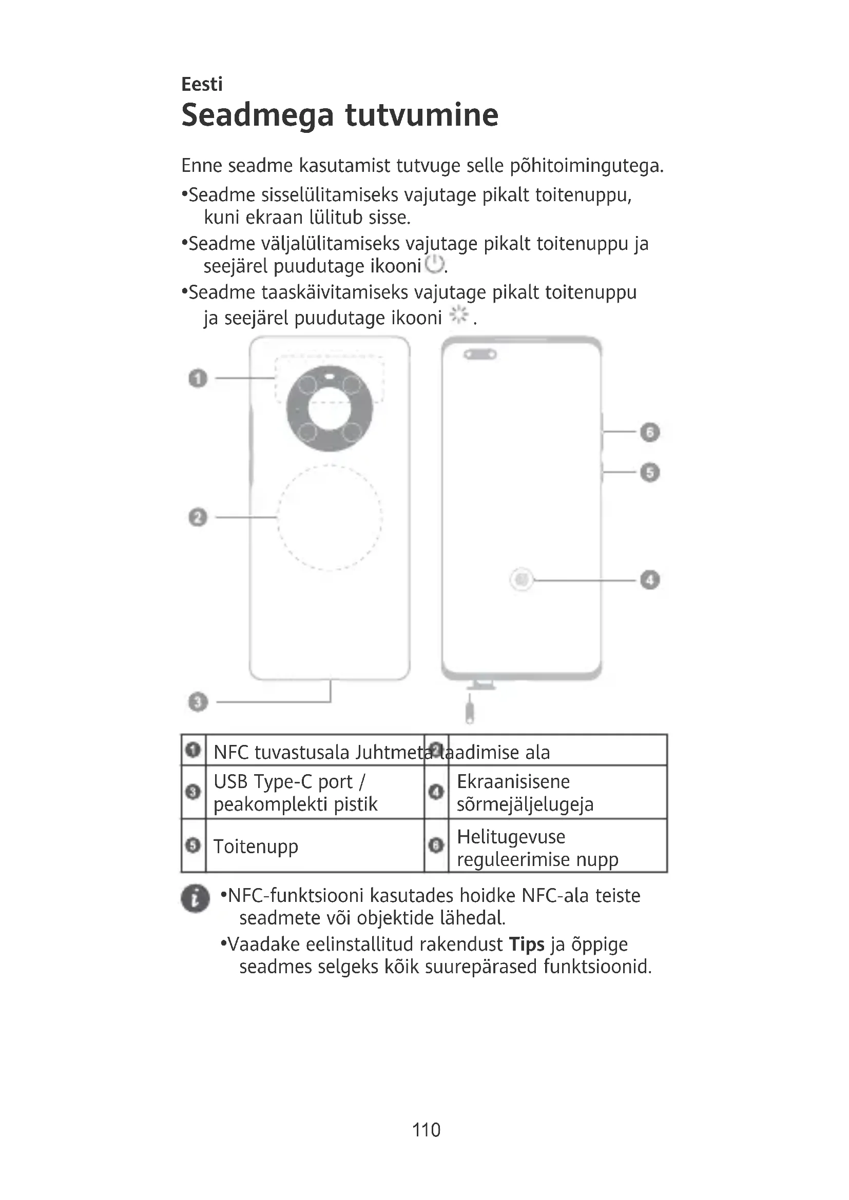 - Vaadake eelinstallitud rakendust Tips ja õppige seadmes selgeks kõik suurepärased funktsioonid. 110Alustamine