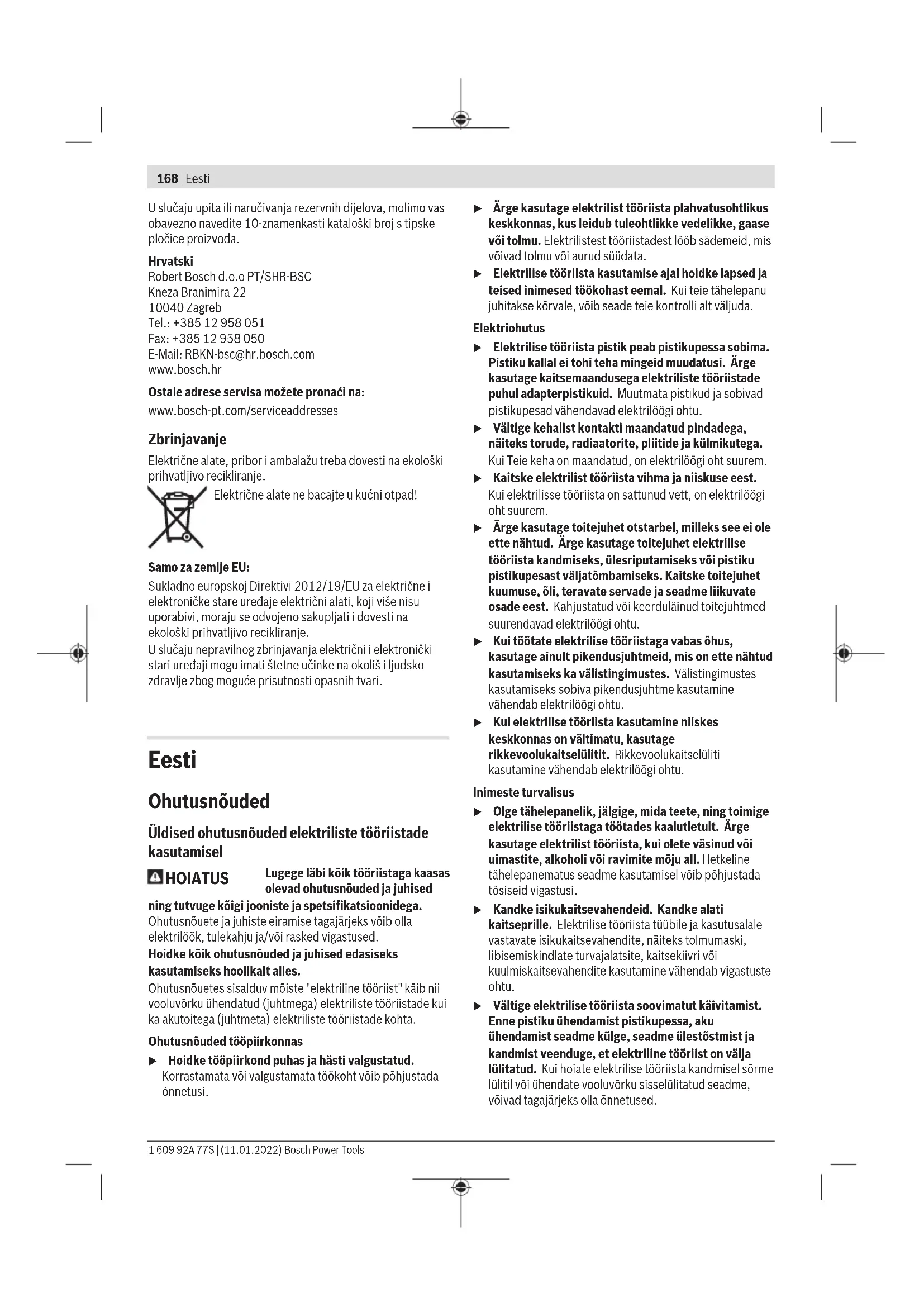 optimaalne võimsus puuri läbimõõduga6−12mm Andmed kehtivad nimipingel [U] 230V. Teistsuguste pingete ja kasutusriigis spetsiifiliste mudelite puhul võivad toodud andmed varieeruda. Andmed müra/vibratsiooni kohta Mürapäästuväärtused, määratud vastavalt ENIEC62841-2-6. Elektrilise tööriista ekvivalentne müratase on tavaliselt: helirõhutase 94dB(A); helivõimsustase 105dB(A). Mõõtemääramatus K=3dB. Kasutage kuulmiskaitsevahendeid! Vibratsiooni koguväärtus a