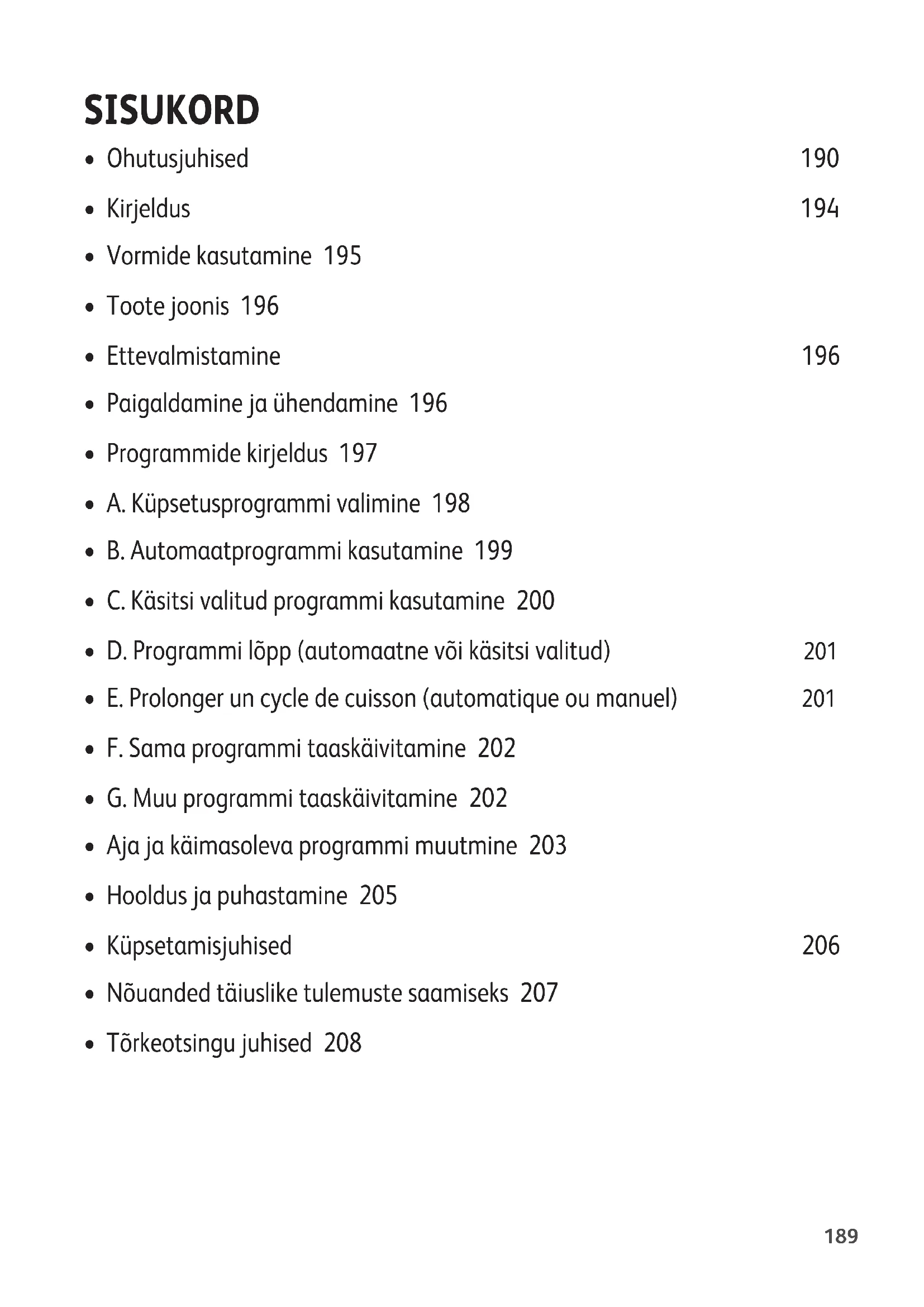 - A. Küpsetusprogrammi valimine 198