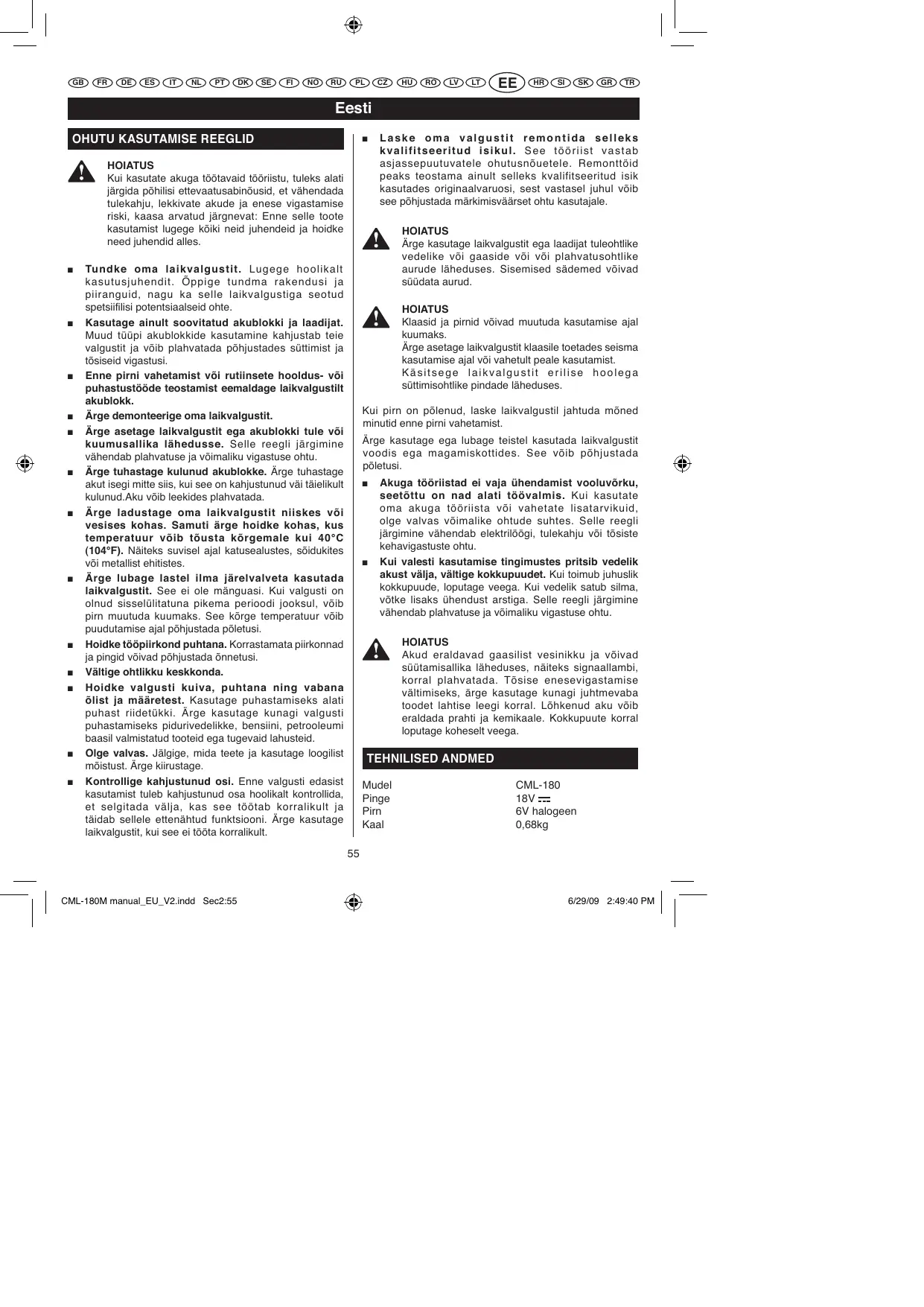 CML-180 - Elektrilised tööriistad RYOBI - Tasuta kasutusjuhend