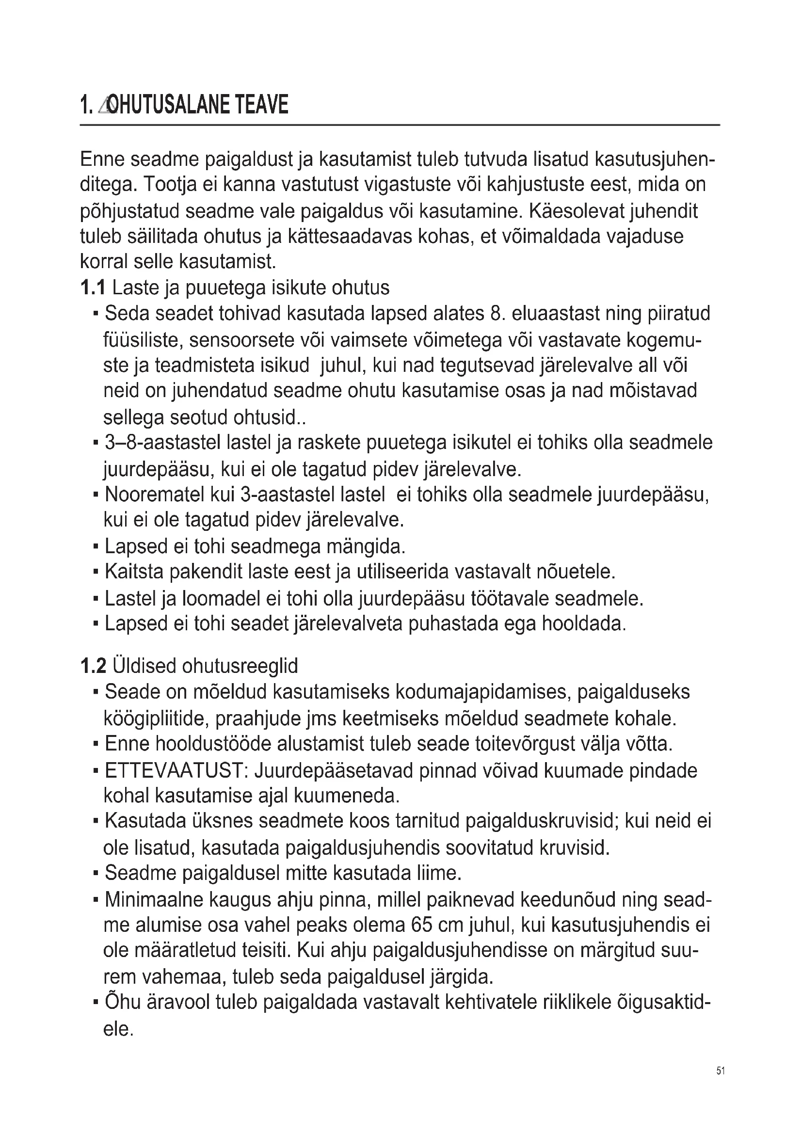 1.2 Üldised ohutusreeglid