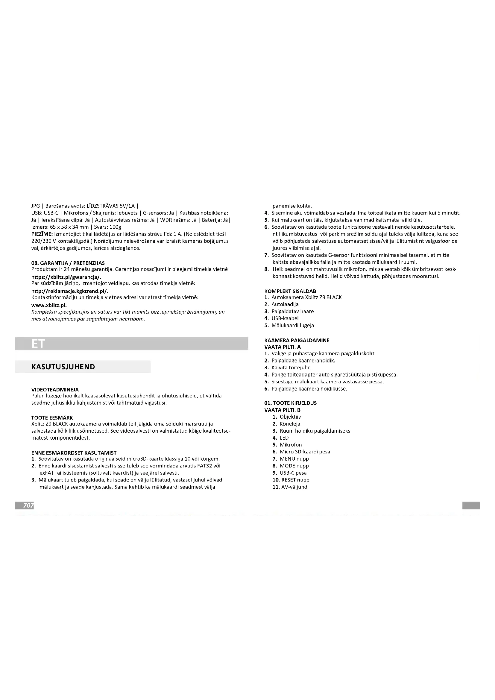 Tootel on 24-kuuline garani. Garaningimused on saadaval veebilehel hps://xblitz.pl/gwarancja/. Kaebustest tuleb teatada, kasutades vormi, mis asub aadressil: hp://reklamacje.kgktrend.pl/. Kontaktandmed ja veebilehe aadress on leitavad veebilehelt: www.xblitz.pl. Komplek spetsikatsioonid ja sisu võivad muutuda ilma ee teatamata, vaban- dame võimalike ebamugavuste pärast.