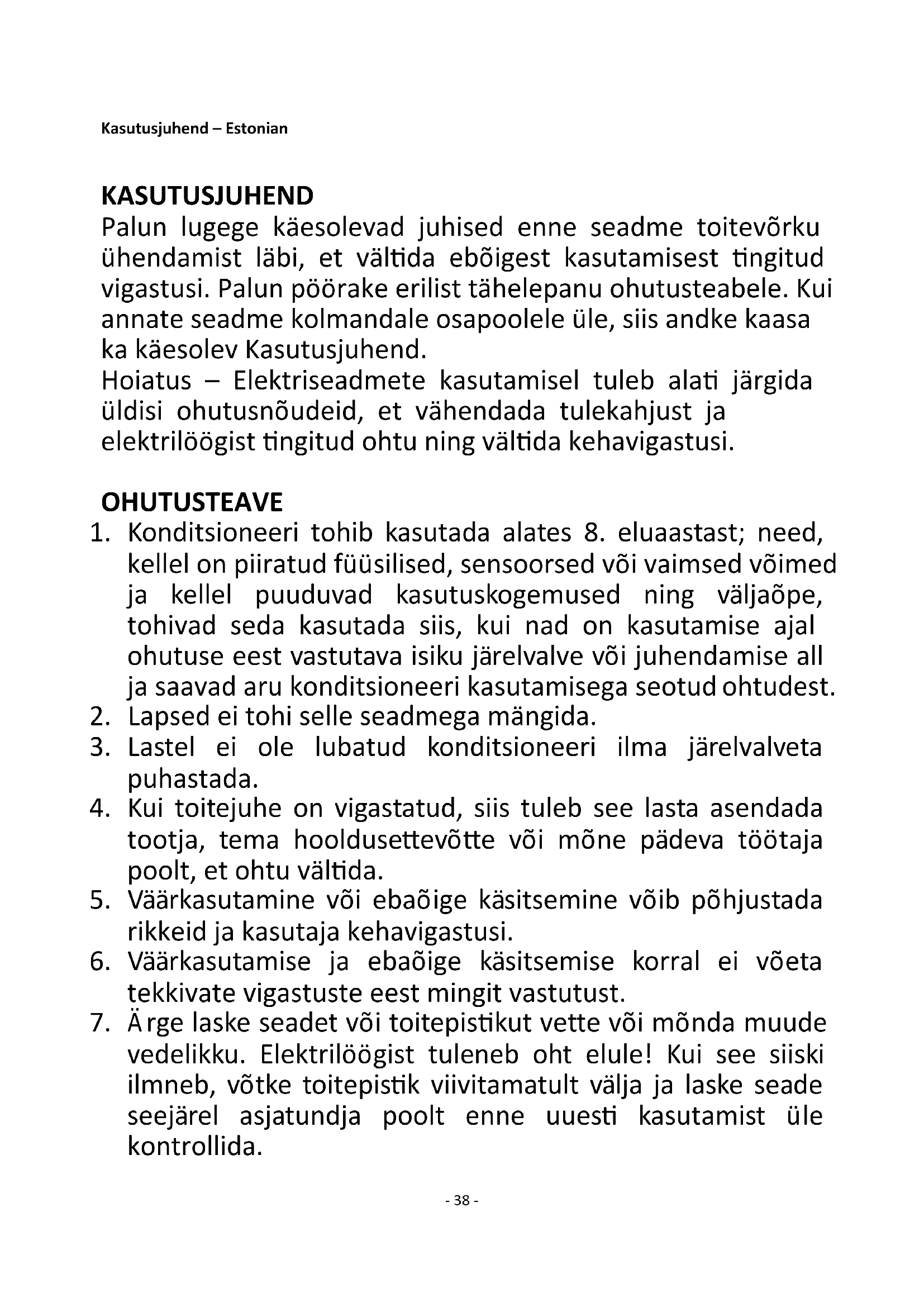 1. Konditsioneeri tohib kasutada alates 8. eluaastast; need,