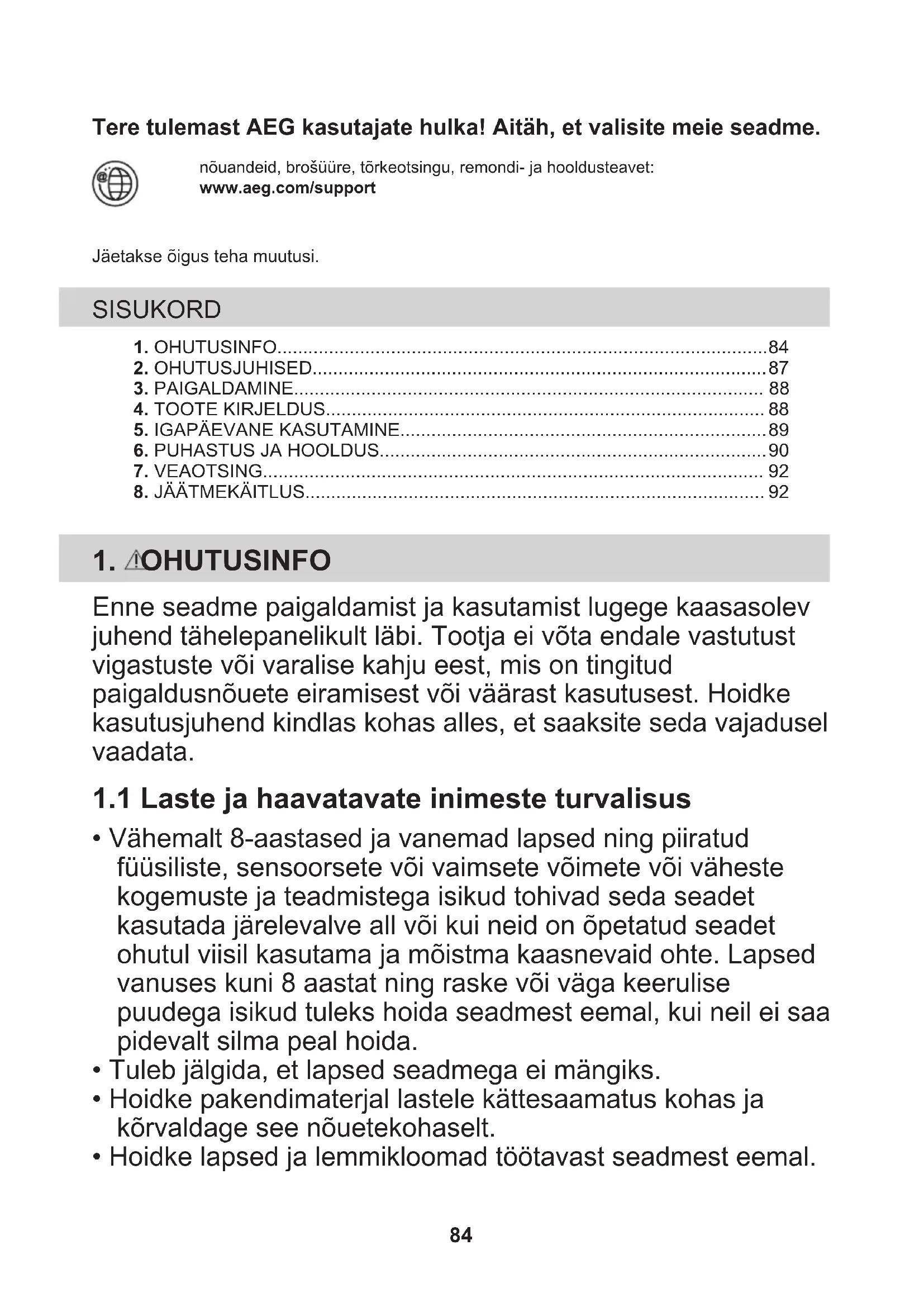 - Hoidke lapsed ja lemmikloomad töötavast seadmest eemal. 84• Lapsed ei tohi ilma järelvalveta seadet puhastada ega hooldustoiminguid läbi viia.