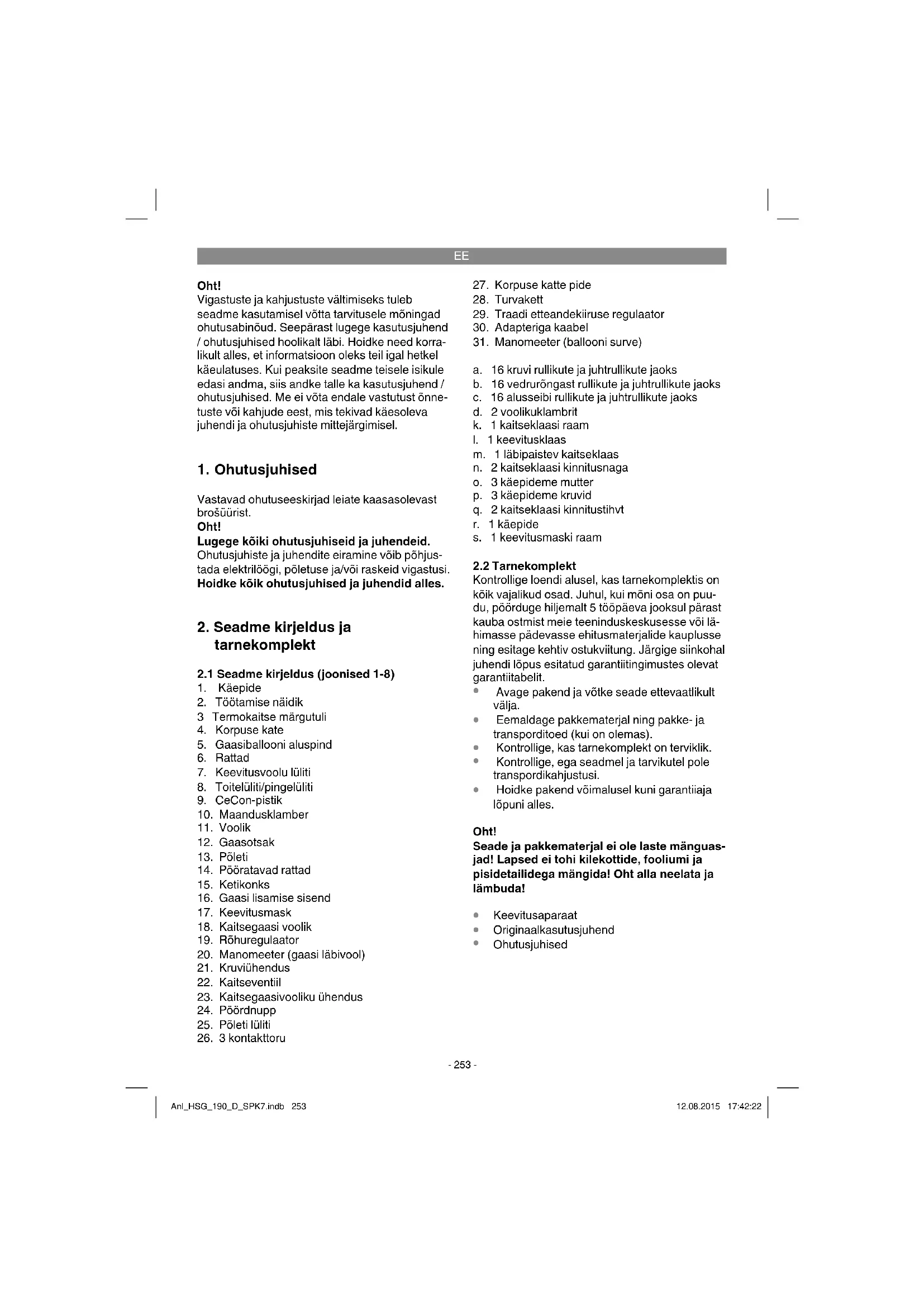 Hoidke pakend võimalusel kuni garantiiaja lõpuni alles. Oht! Seade ja pakkematerjal ei ole laste mänguas- jad! Lapsed ei tohi kilekottide, fooliumi ja pisidetailidega mängida! Oht alla neelata ja lämbuda!