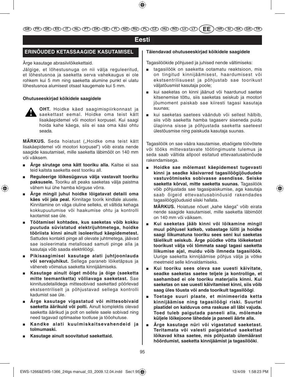 EWS-1366 - Elektrilised tööriistad RYOBI - Tasuta kasutusjuhend