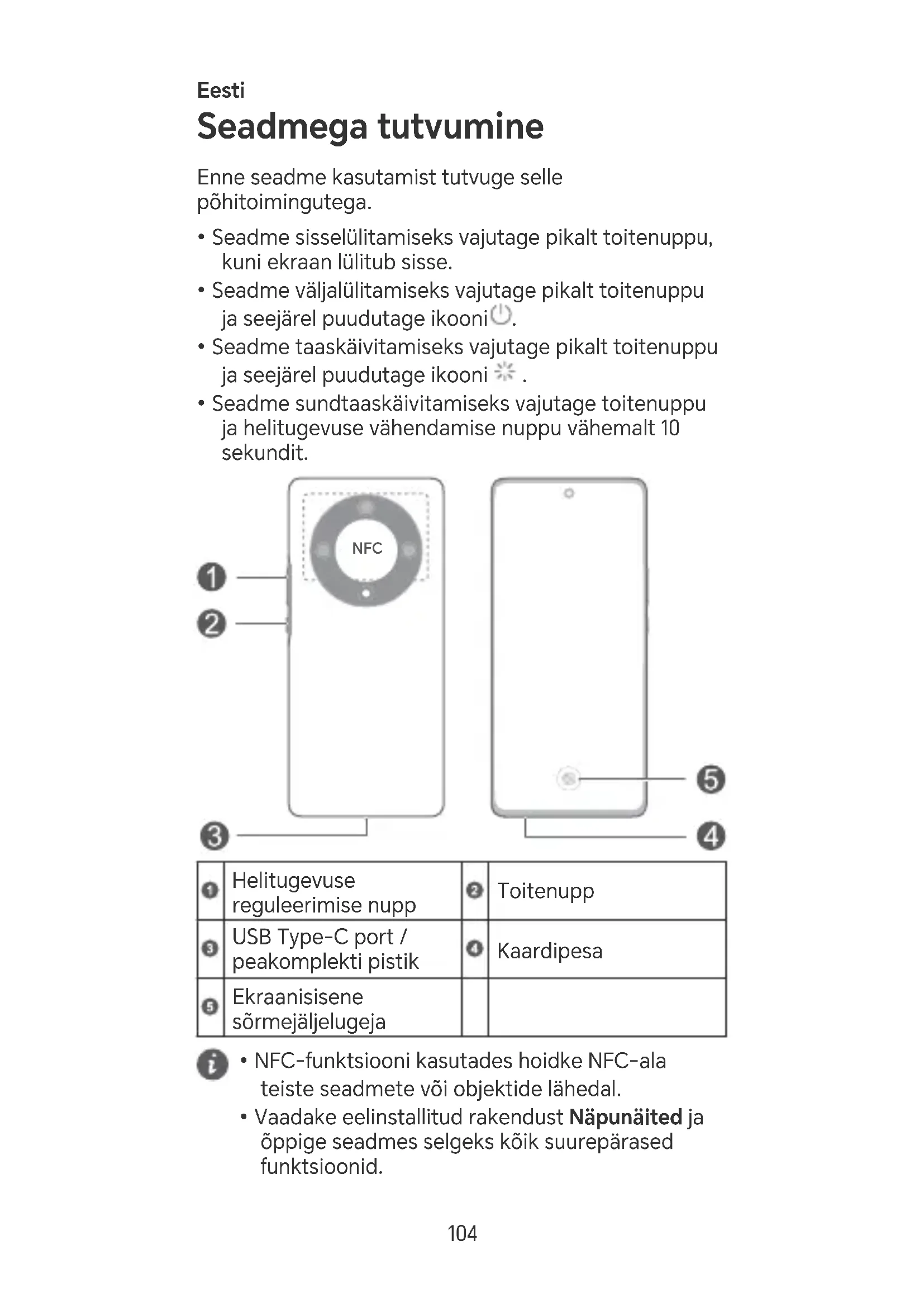 103Eesti Seadmega tutvumine Enne seadme kasutamist tutvuge selle põhitoimingutega.