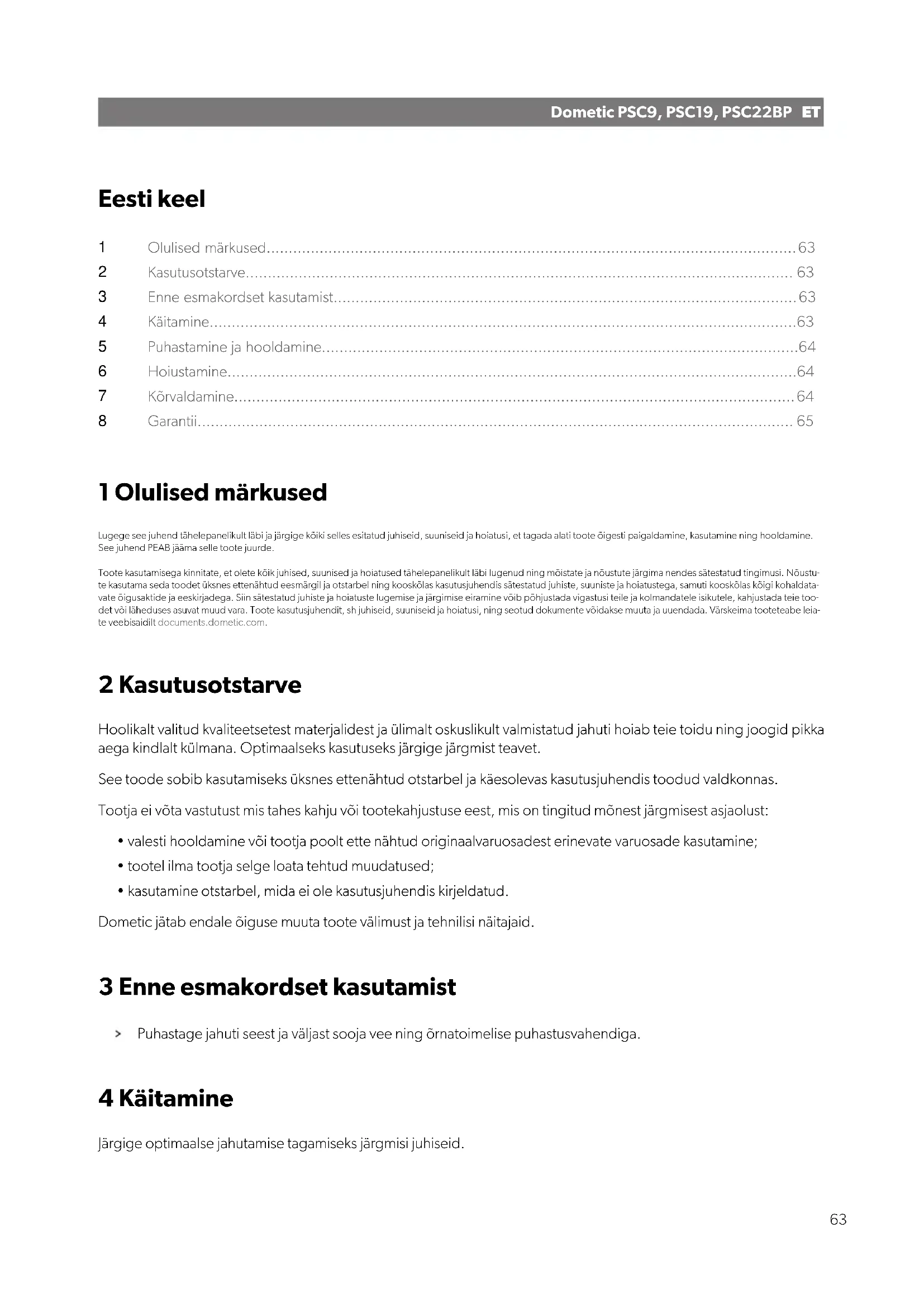 KASUTUSJUHEND PSC 9 DOMETIC