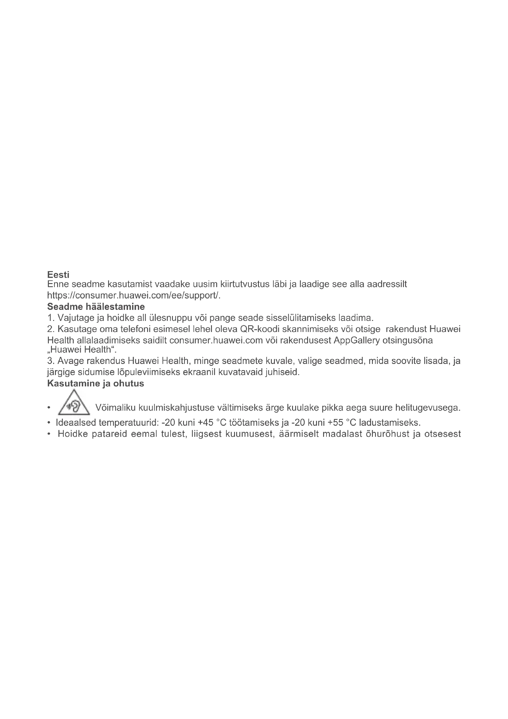 - Võimaliku kuulmiskahjustuse vältimiseks ärge kuulake pikka aega suure helitugevusega.