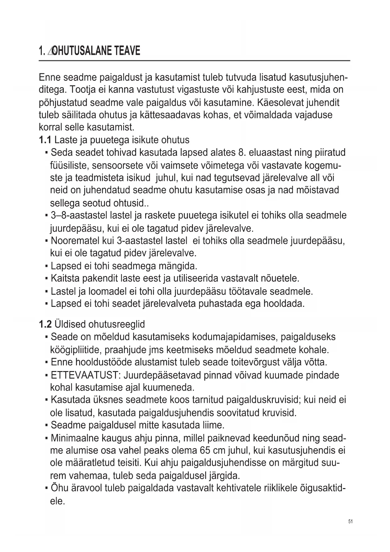 1.2 Üldised ohutusreeglid