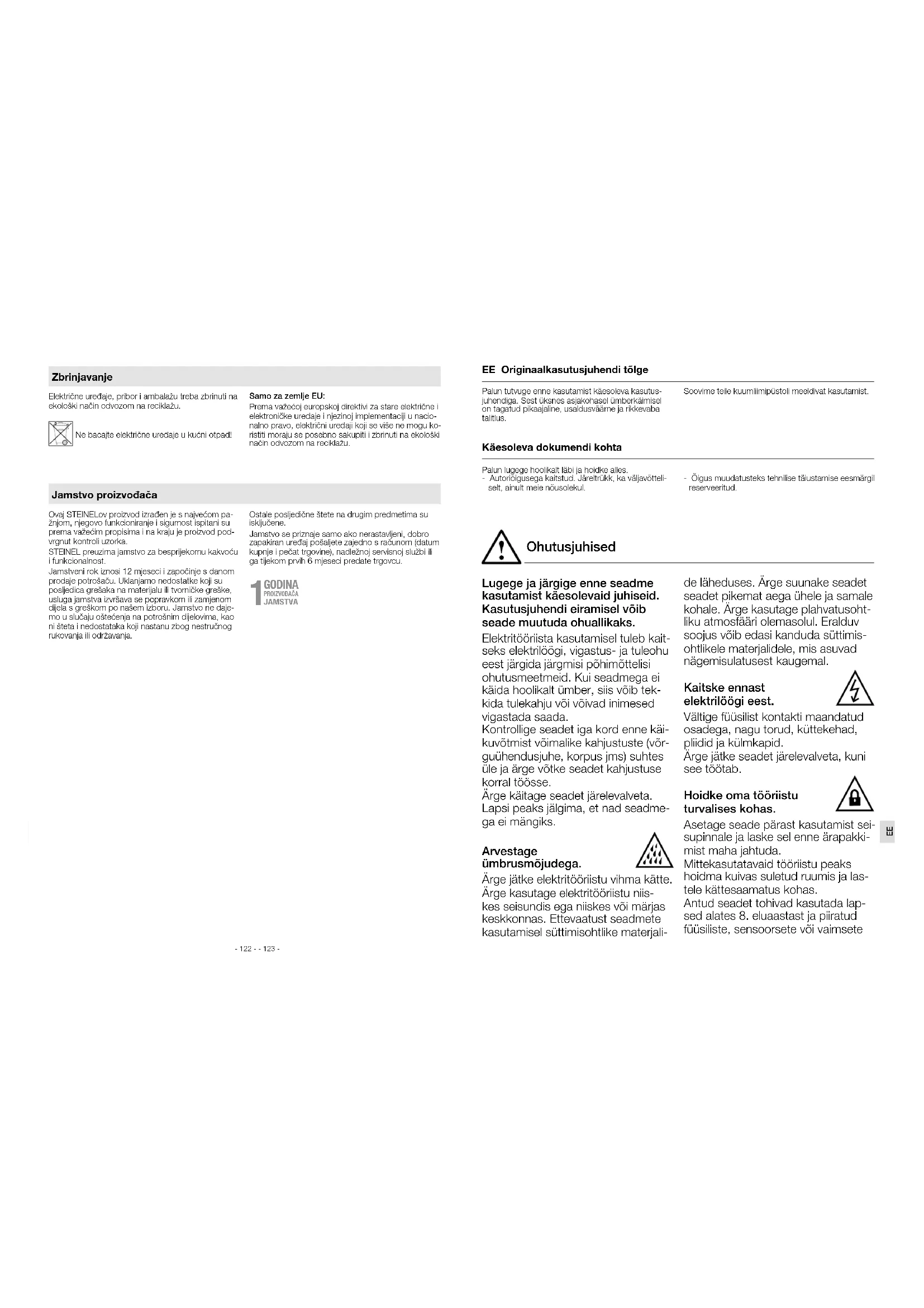 GODINA JAMSTVA Ohutusjuhised Palun tutvuge enne kasutamist käesoleva kasutus-juhendiga. Sest üksnes asjakohasel ümberkäimisel on tagatud pikaajaline, usaldusväärne ja rikkevaba talitlus.Soovime teile kuumliimipüstoli meeldivat kasutamist.EEOriginaalkasutusjuhendi tõlgeKäesoleva dokumendi kohtaPalun lugege hoolikalt läbi ja hoidke alles.- Autoriõigusega kaitstud. Järeltrükk, ka väljavõtteli-selt, ainult meie nõusolekul.- Õigus muudatusteks tehnilise täiustamise eesmärgil reserveeritud.- 124 - - 125 -