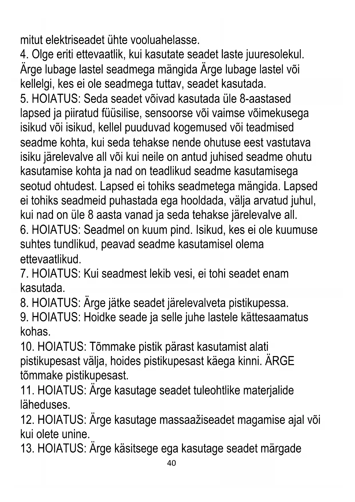 4. Olge eriti ettevaatlik, kui kasutate seadet laste juuresolekul.