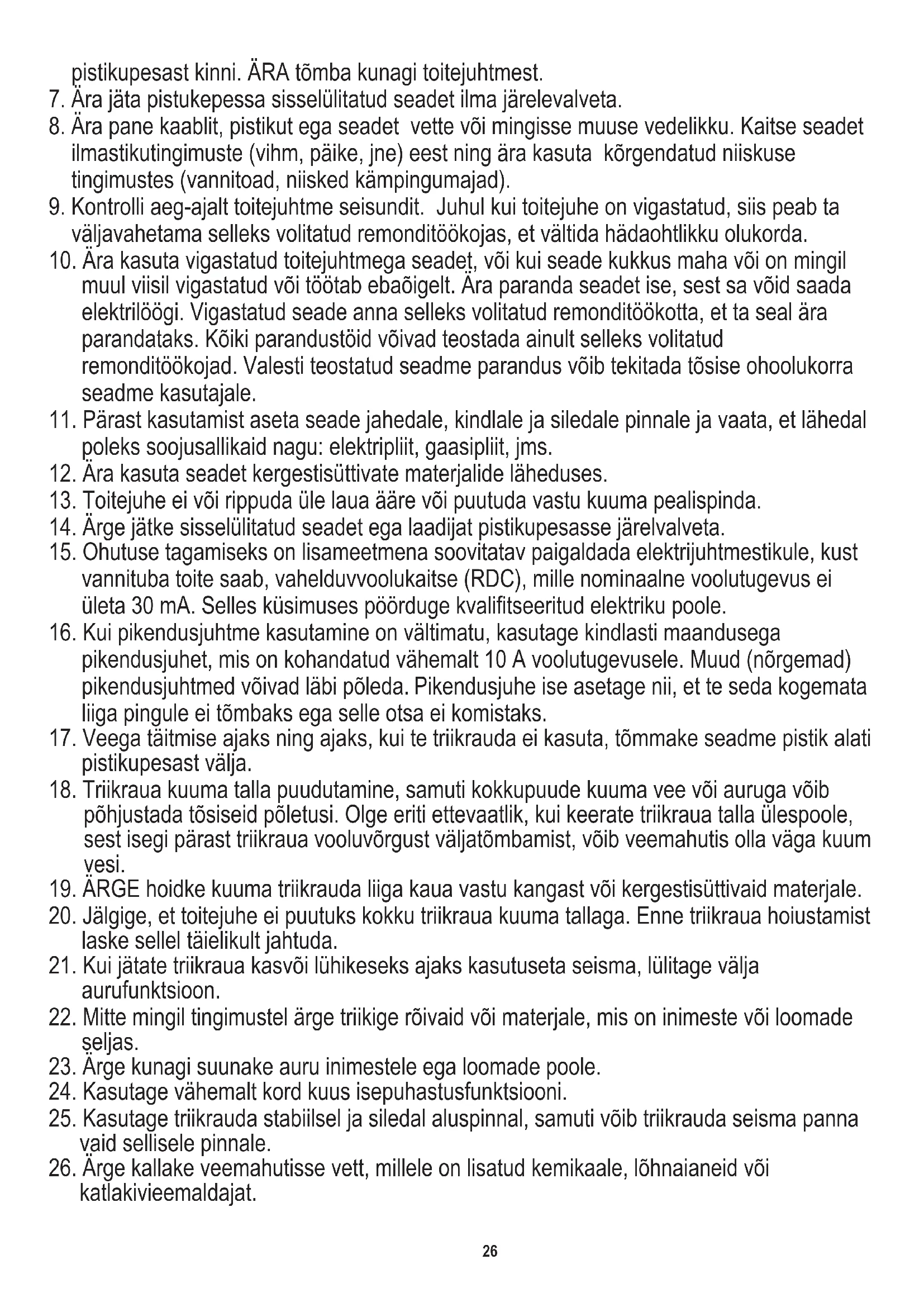 25. Kasutage triikrauda stabiilsel ja siledal aluspinnal, samuti võib triikrauda seisma panna