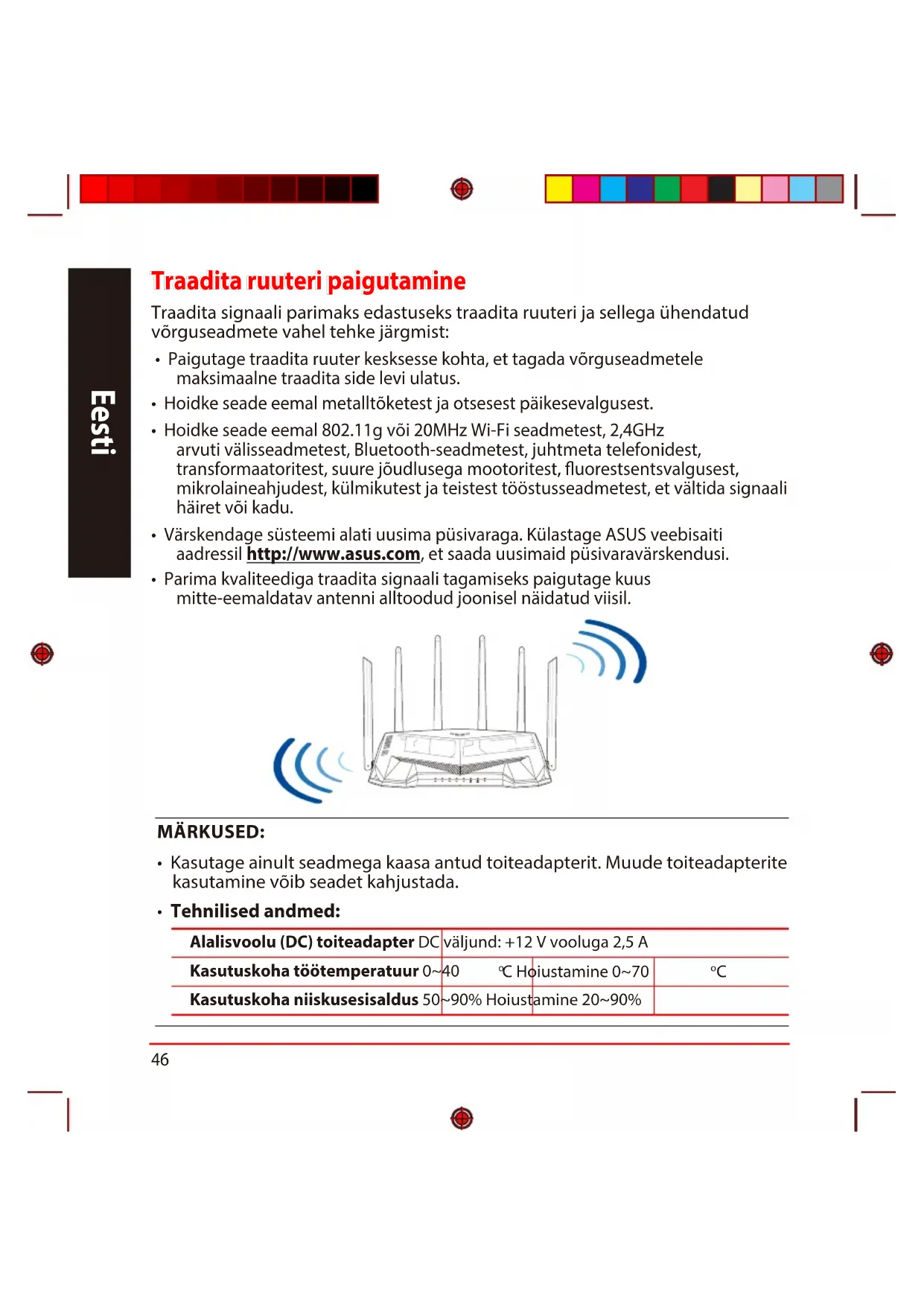 - Paigutage traadita ruuter kesksesse kohta, et tagada võrguseadmetele maksimaalne traadita side levi ulatus.