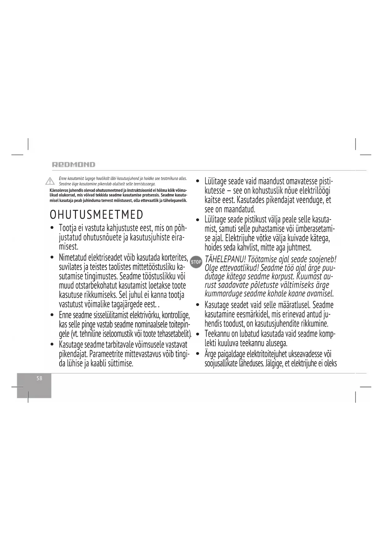 KASUTUSJUHEND RKM124E Redmond