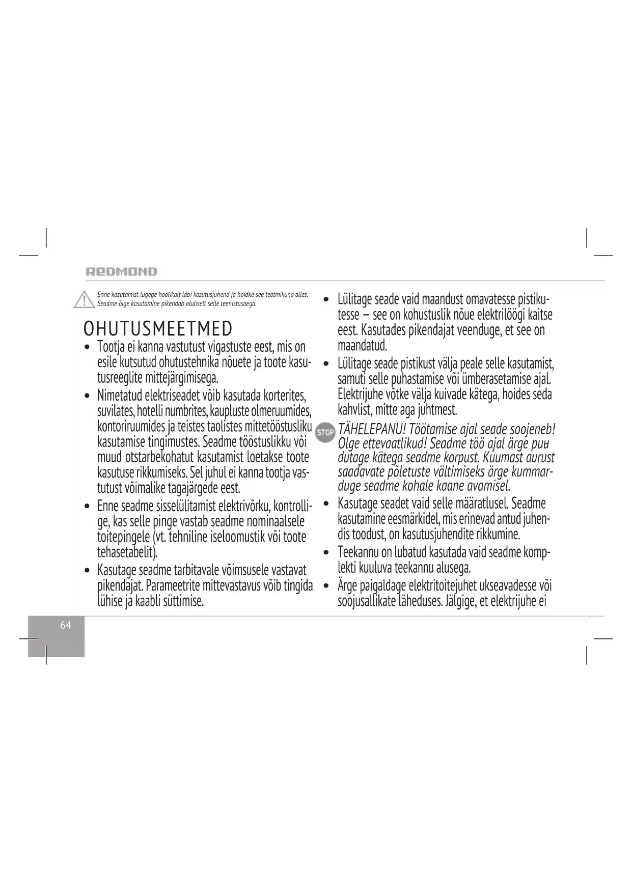 KASUTUSJUHEND RKG168E Redmond