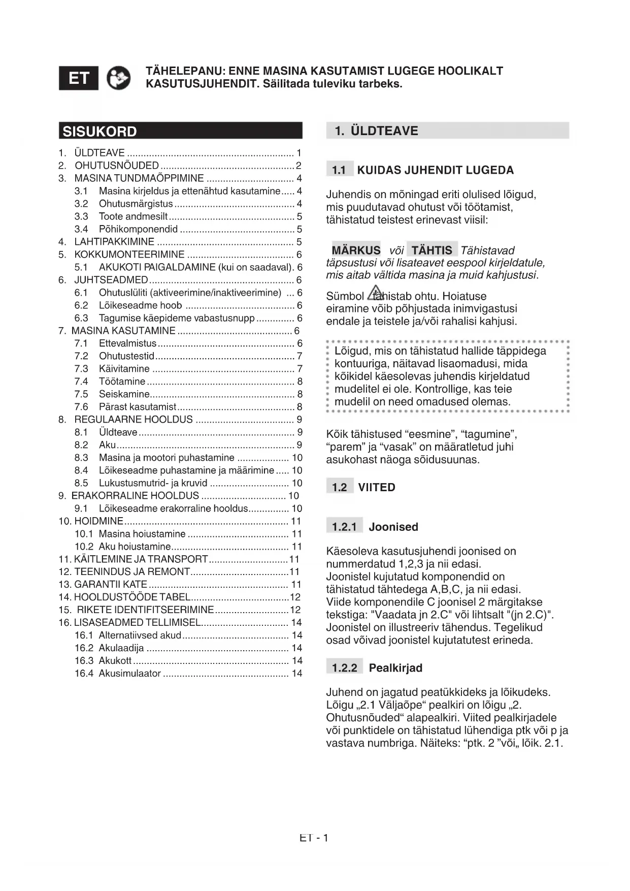 TÄHTIS Nõutud ohutusnormid leiate pt. 2. Järgige rangelt neid suuniseid, et mitte sattuda tõsisesse ohtu.