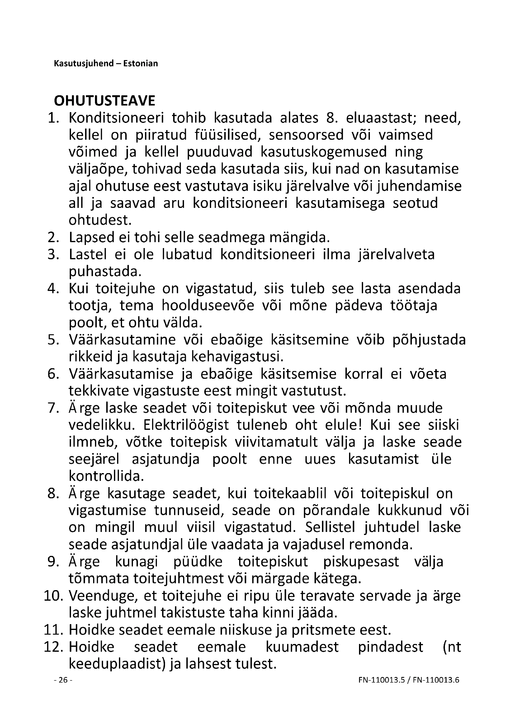1. Konditsioneeri tohib kasutada alates 8. eluaastast; need,