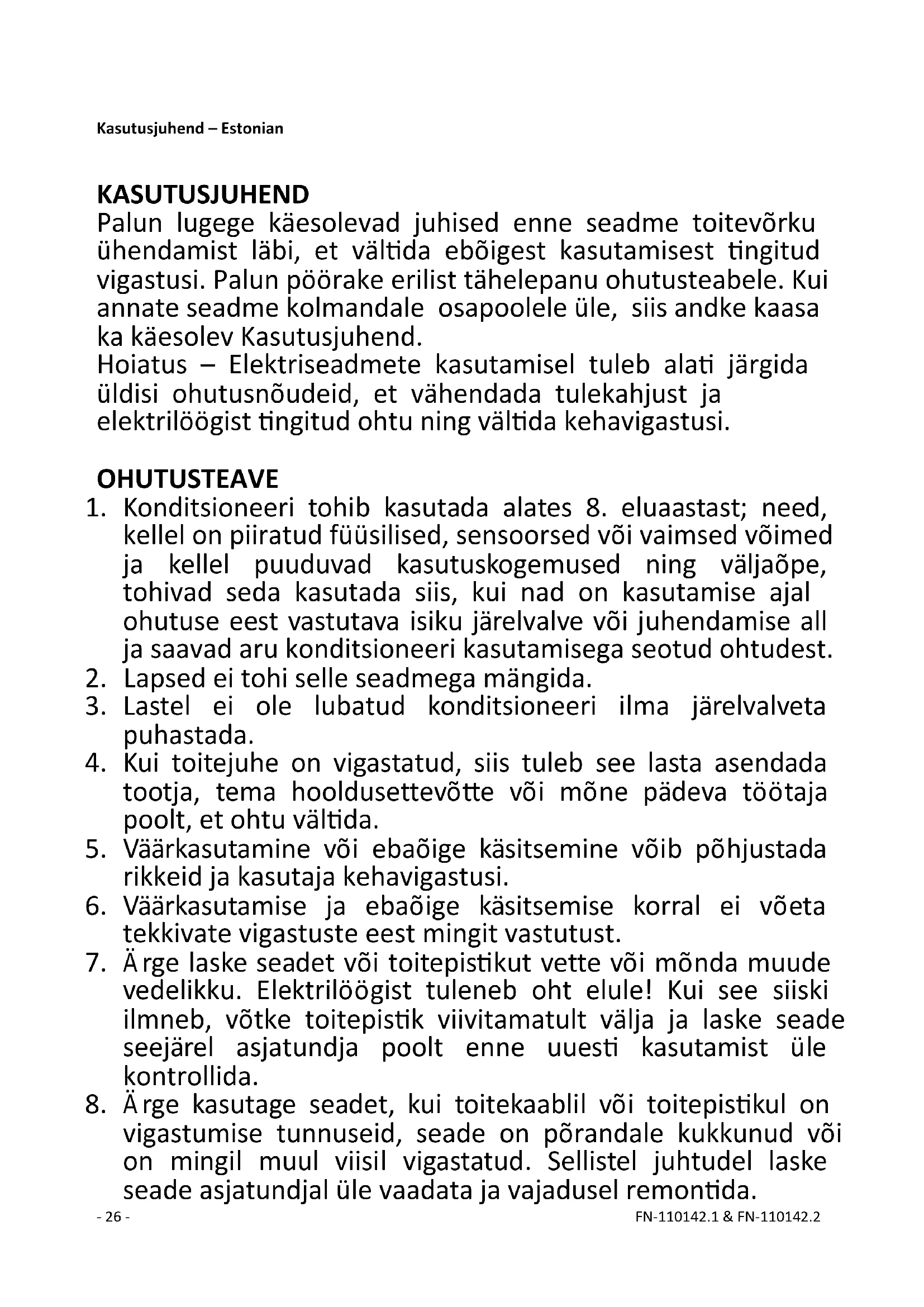 1. Konditsioneeri tohib kasutada alates 8. eluaastast; need,