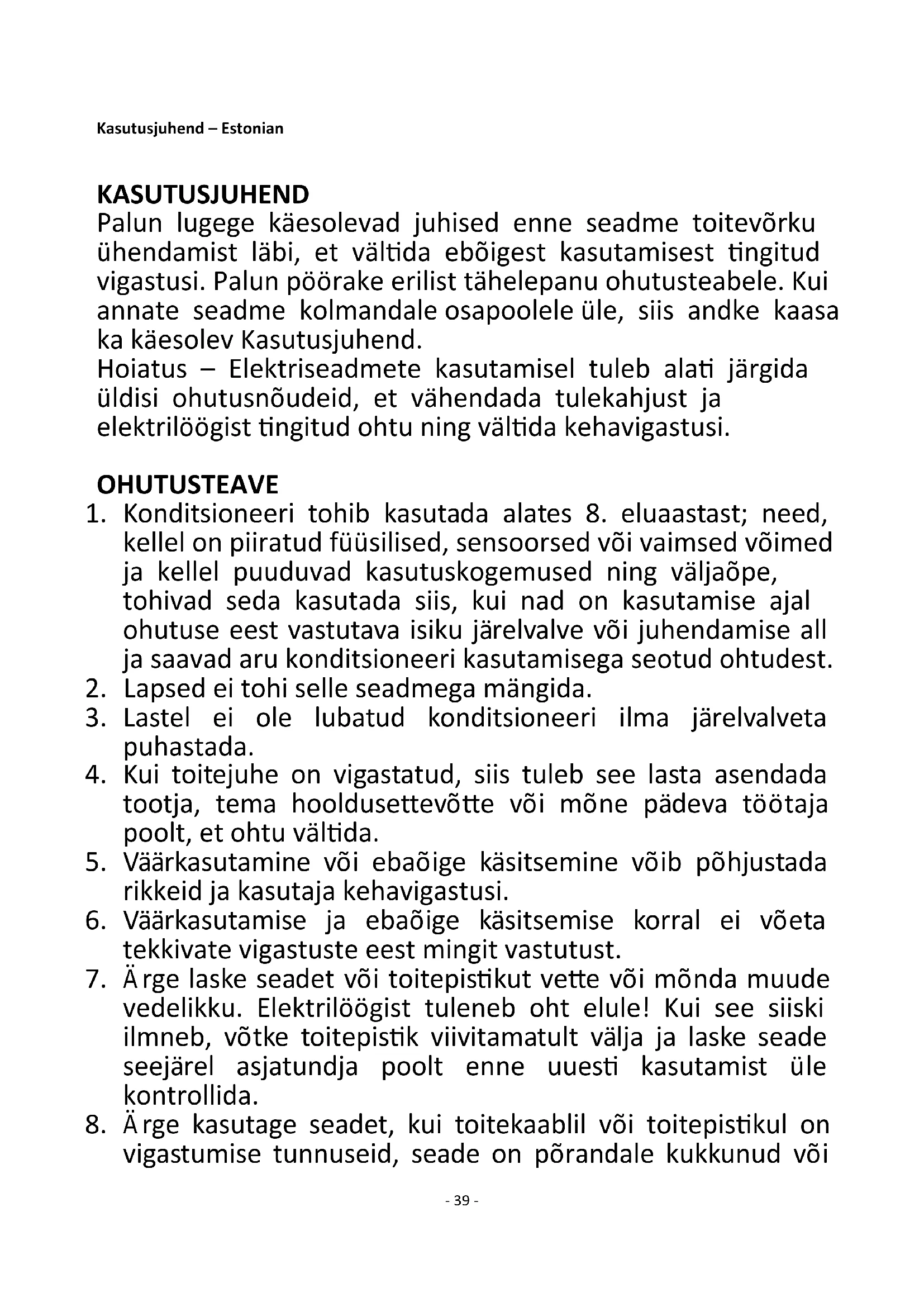 1. Konditsioneeri tohib kasutada alates 8. eluaastast; need,