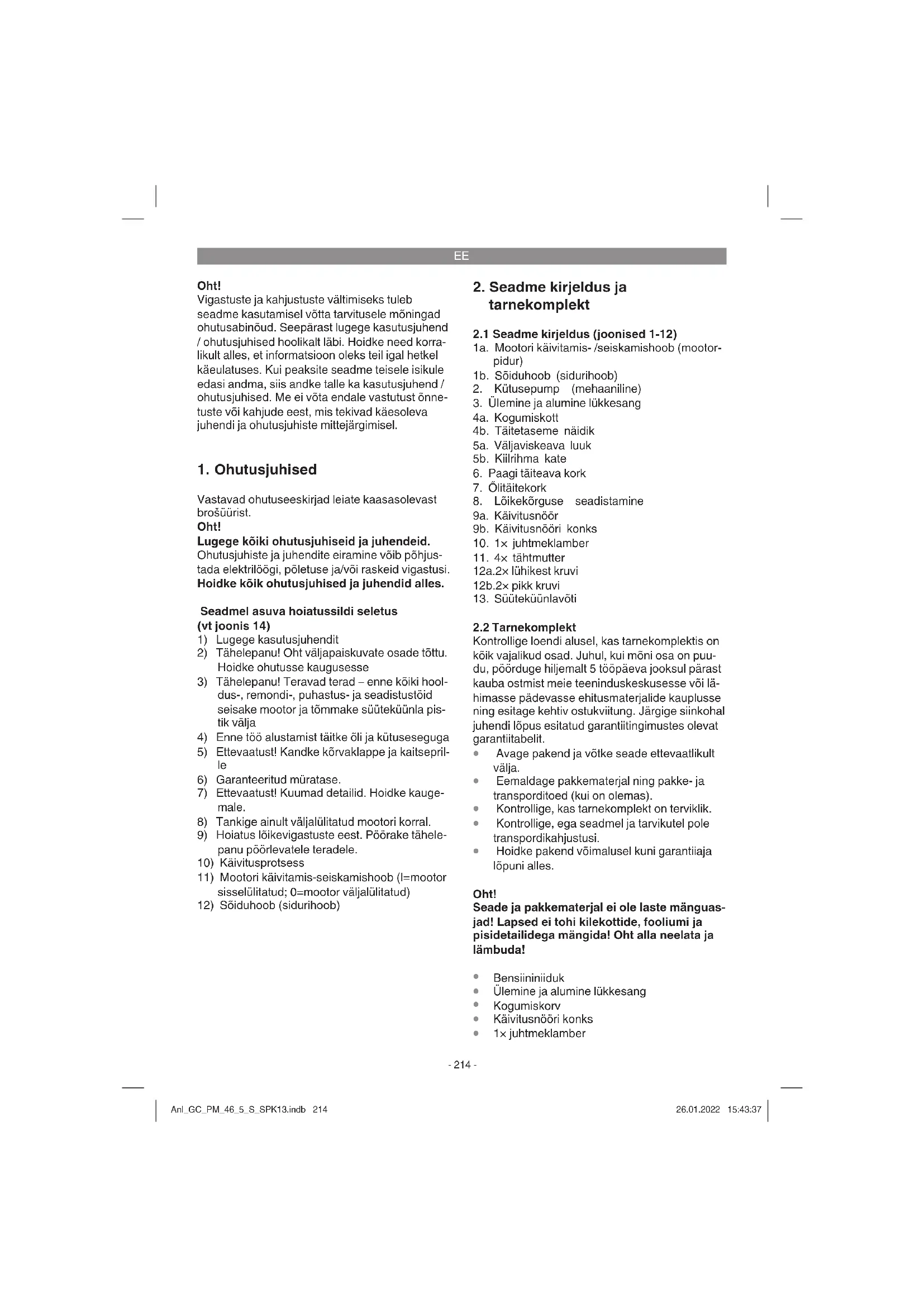 vibreerimisest juhul, kui seadet kasutatakse pikema aja jooksul või seda ei kasutata ega hooldata nõuetele vastavalt. Anl_GC_PM_46_5_S_SPK13.indb 215Anl_GC_PM_46_5_S_SPK13.indb 215 26.01.2022 15:43:3826.01.2022 15:43:38EE