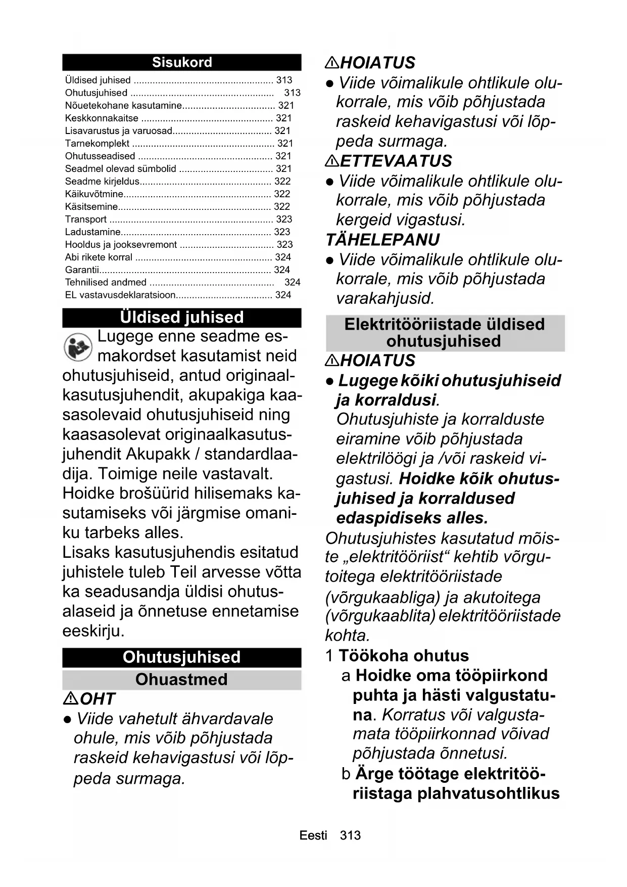 - Ohutusjuhised p. 313
