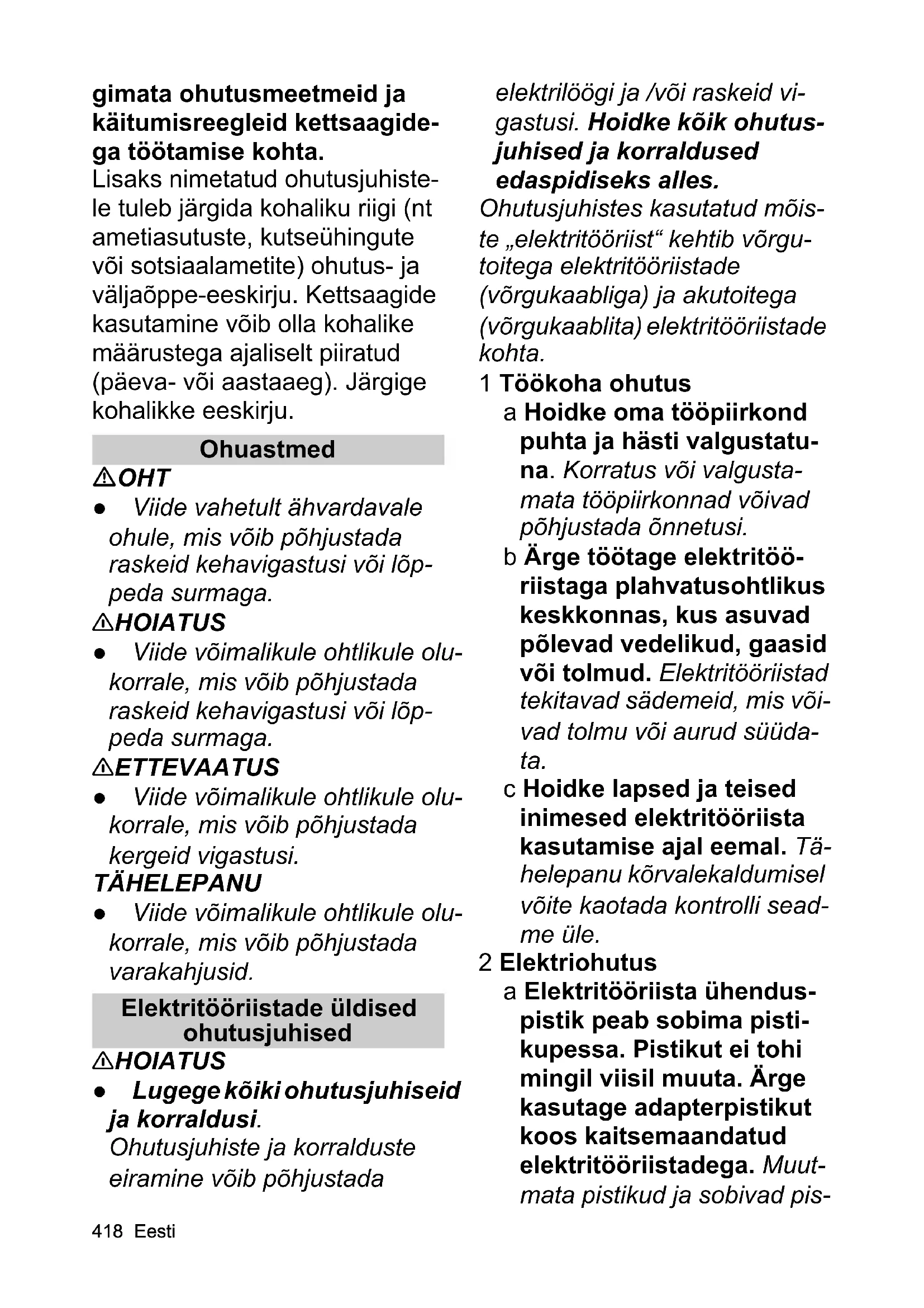 - Ohutusjuhised p. 417
