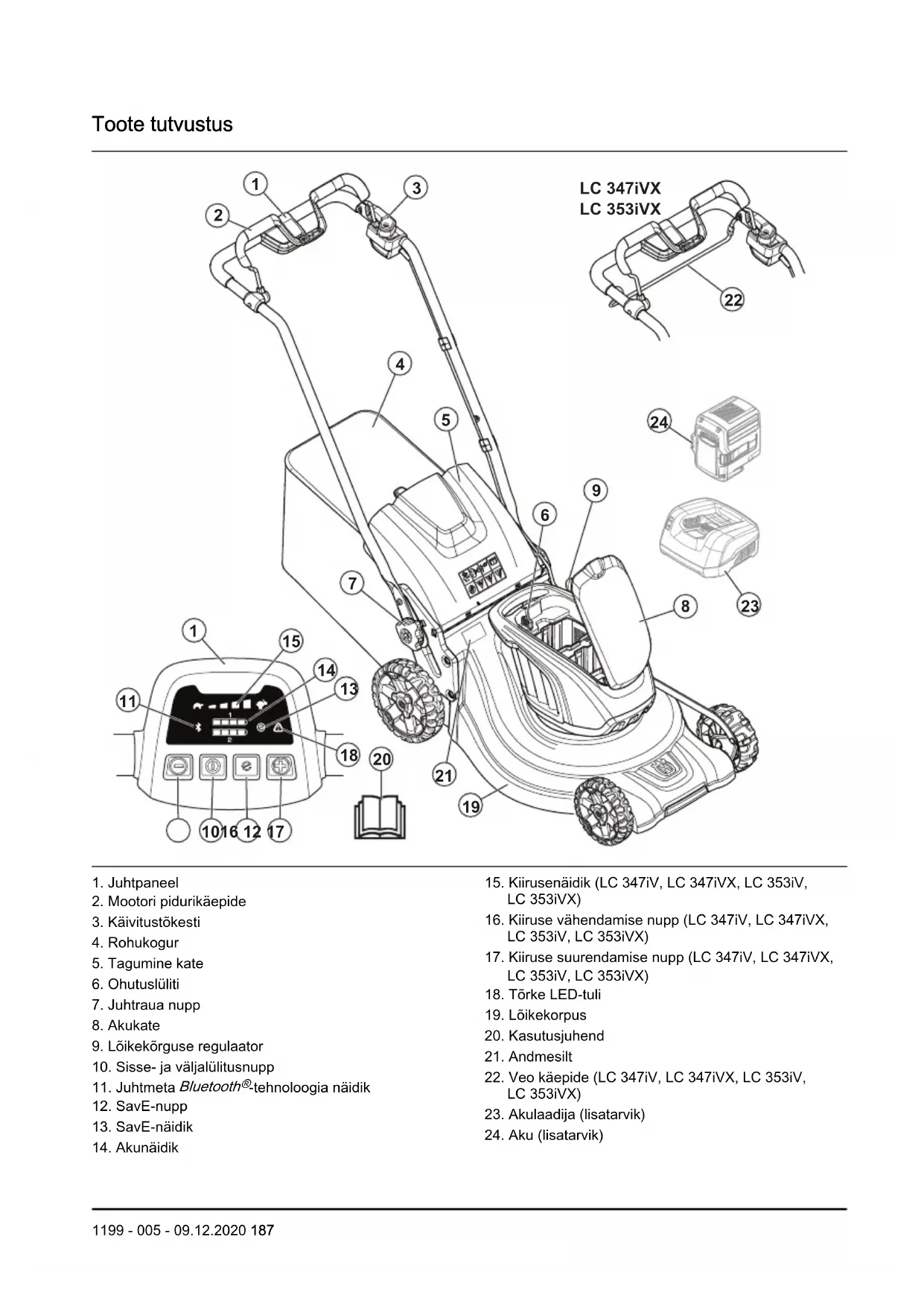 - Kontrollige lõikeosa kahjustuste (nt pragude) suhtes. 1199 - 005 - 09.12.2020 193Ohutuslüliti Ohutuslüliti asub akukaane all. Ohutuslüliti abil ühendatakse aku, mis varustab mootori toitega.
