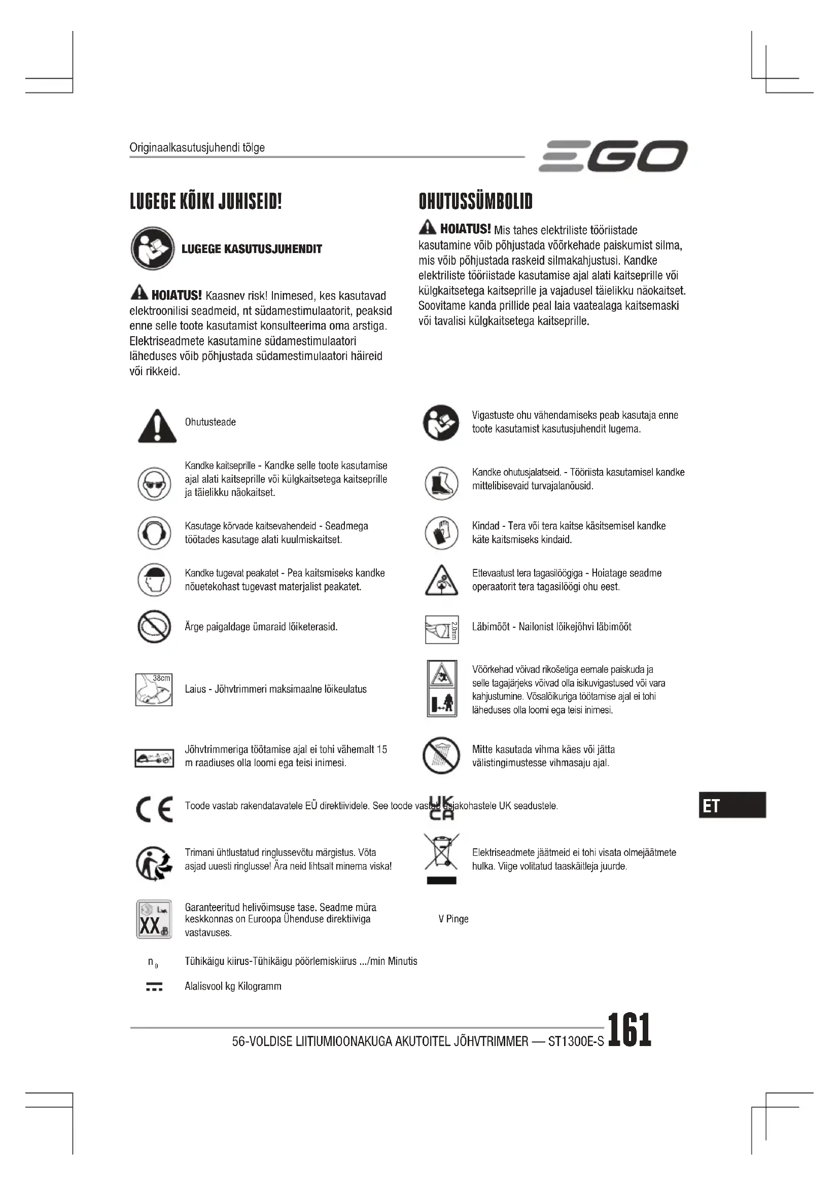 ST1301ES - Murutrimmer EGO - Tasuta kasutusjuhend