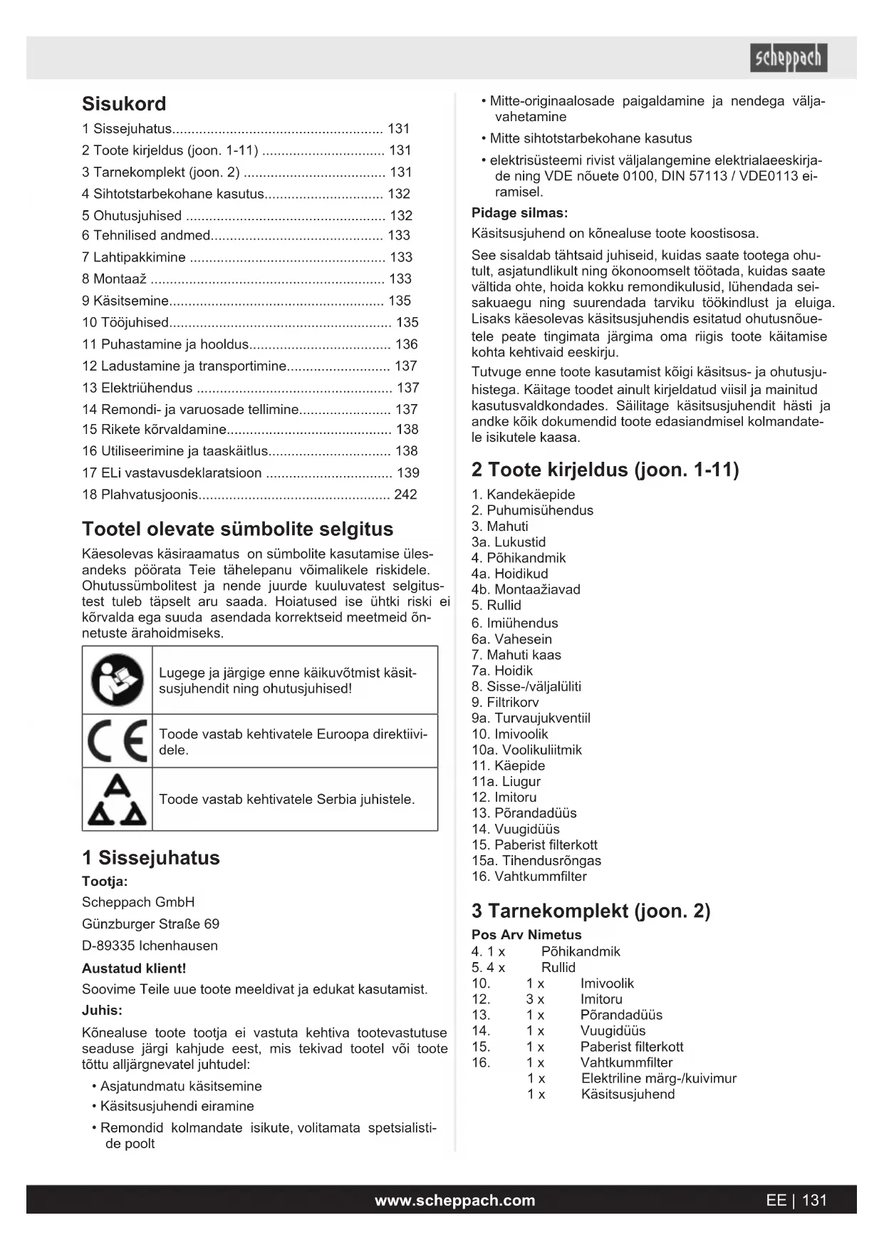 KASUTUSJUHEND VC25 SCHEPPACH