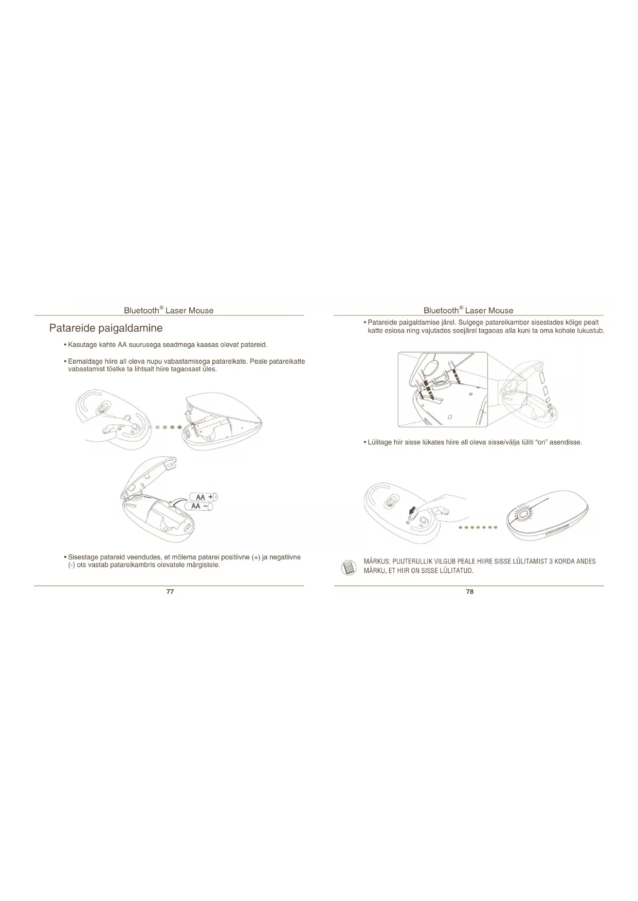 peab teie hiir olema “discovery” režiimis. “Discovery” režiimi aktiveerimiseks lülitage hiir sisse ning 3 sekundi möödudes vajutage “discovery” režiimi käivitamiseks hiire suvalisele nupule.