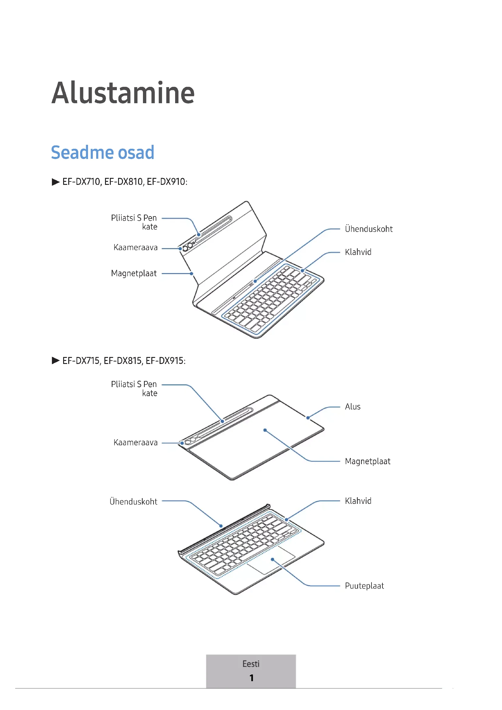 EF-DX715, EF-DX815, EF-DX915: Kaameraava Alus Magnetplaat Pliiatsi SPen kate Puuteplaat KlahvidÜhenduskoht Eesti