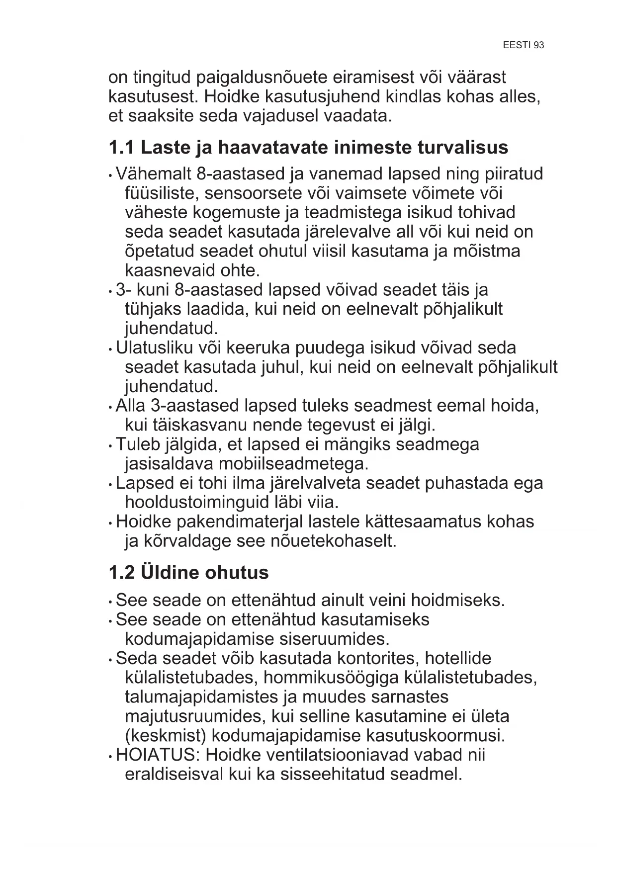 - Lapsed ei tohi ilma järelvalveta seadet puhastada ega hooldustoiminguid läbi viia.