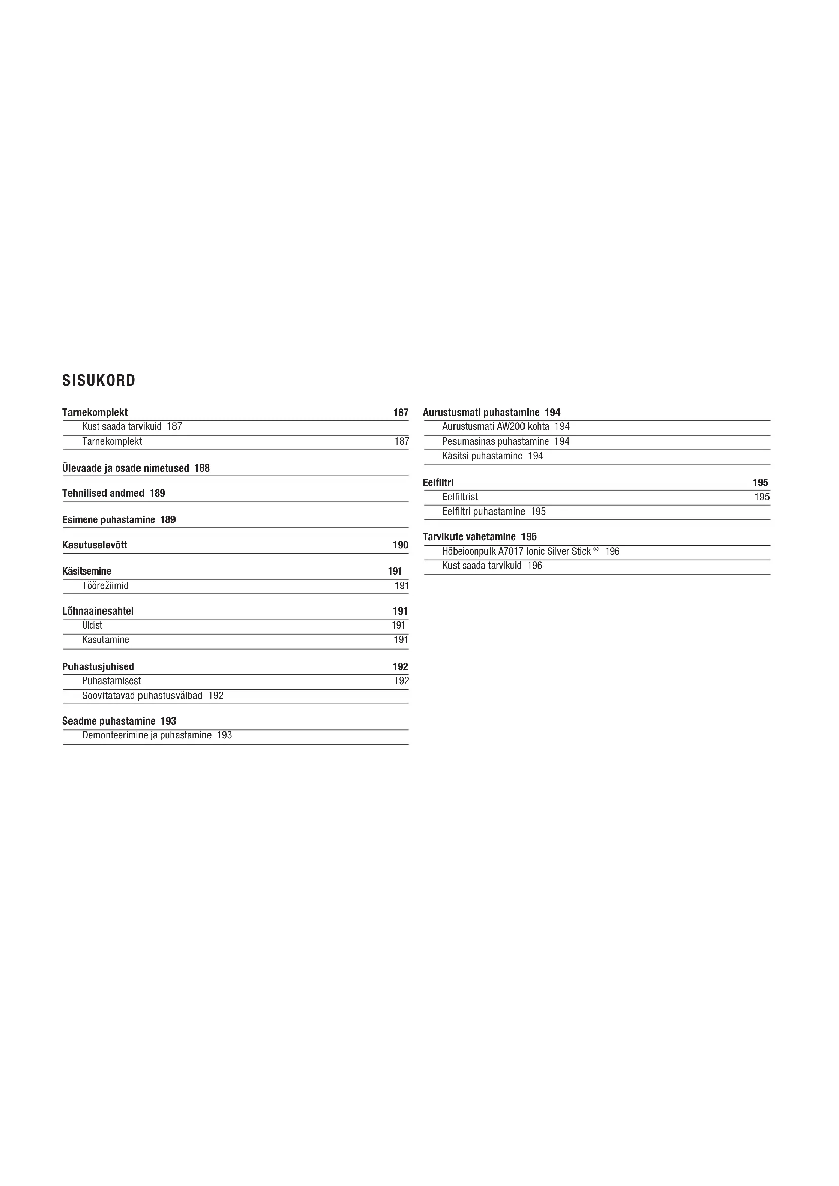 Eelfilter puhasab ohu surematest mustuseosakestest. Puhasage eelfiltrit, kui see laheb tolmuseks voi maardub