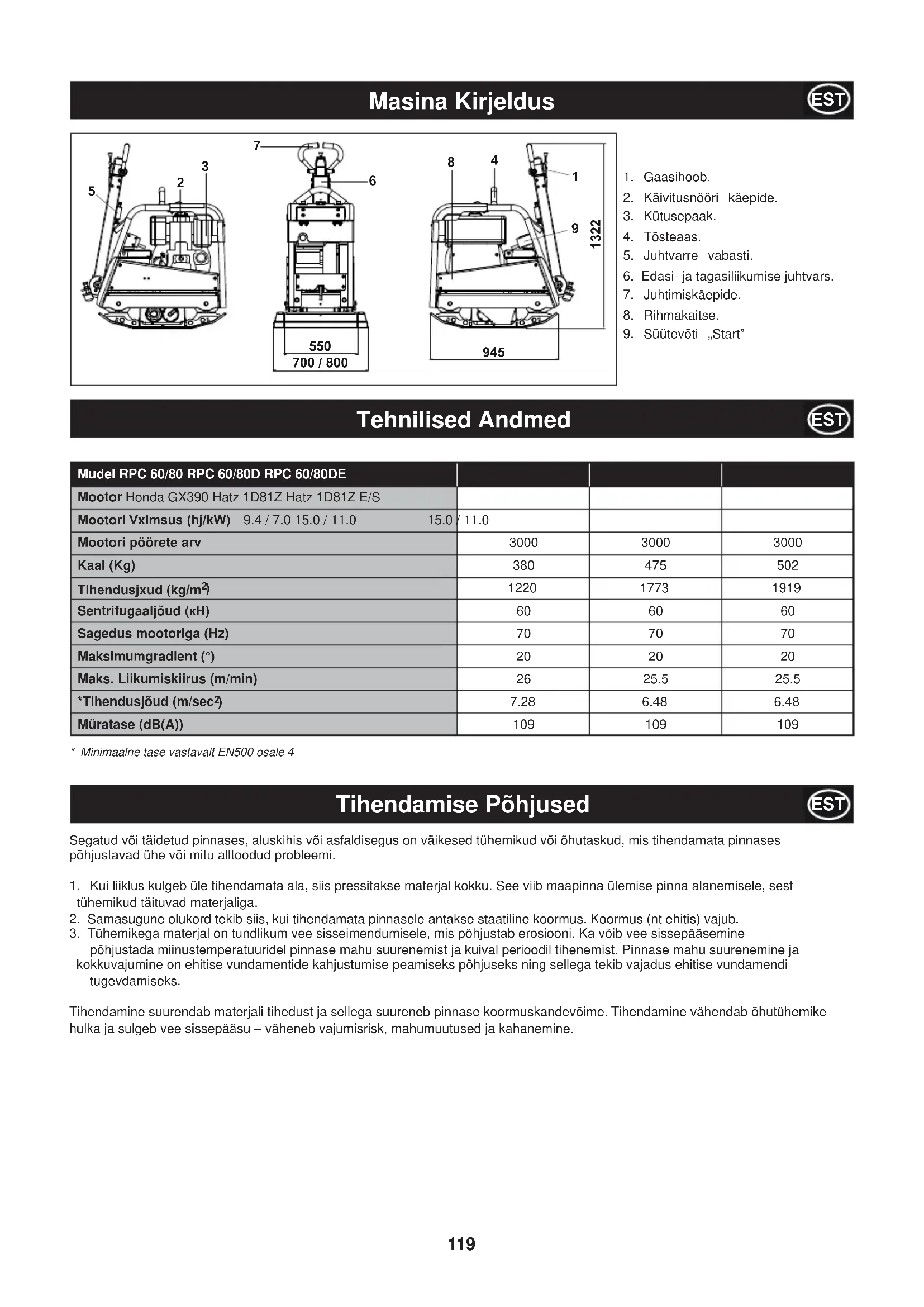 - Minimaalne tase vastavalt EN500 osale 4 Tihendamise Põhjused EST Segatud või täidetud pinnases, aluskihis või asfaldisegus on väikesed tühemikud või õhutaskud, mis tihendamata pinnases põhjustavad ühe või mitu alltoodud probleemi. 1. Kui liiklus kulgeb üle tihendamata ala, siis pressitakse materjal kokku. See viib maapinna ülemise pinna alanemisele, sest tühemikud täituvad materjaliga.