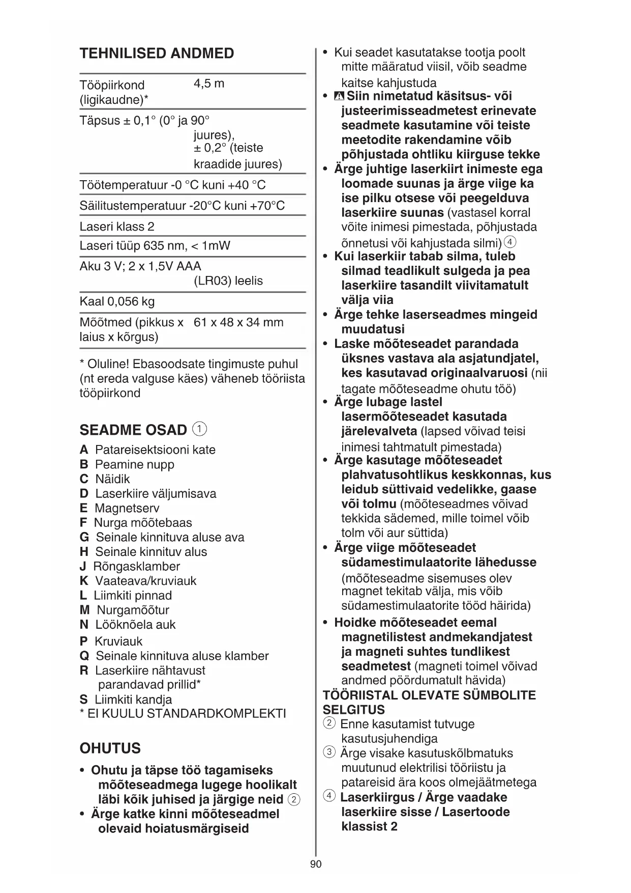 - Ohutu ja täpse töö tagamiseks mõõteseadmega lugege hoolikalt läbi kõik juhised ja järgige neid