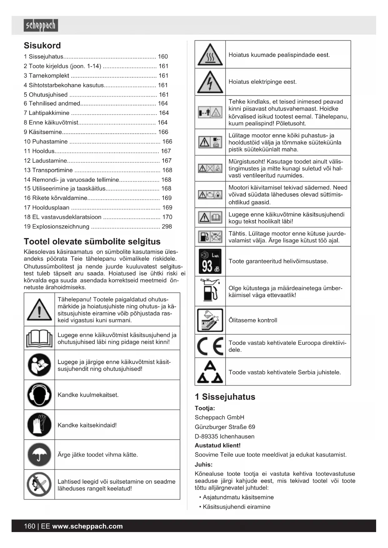 - Käsitsusjuhendi eiramine 160 | EE www.scheppach.com• Remondid kolmandate isikute, volitamata spetsialisti- de poolt