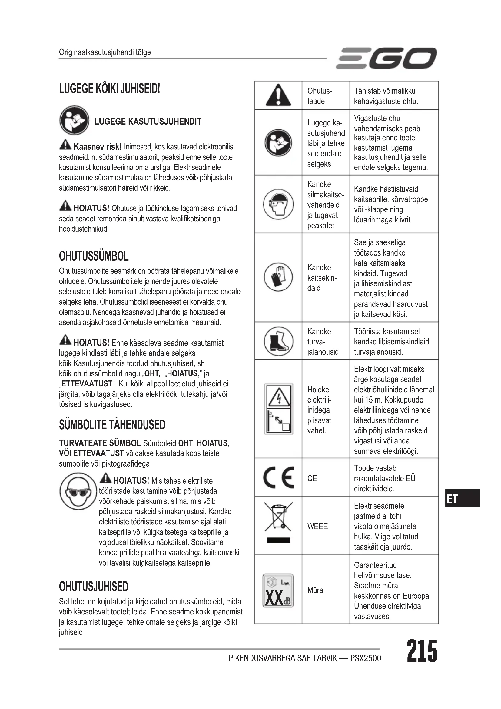 PSX2500 - Mitmeotstarbelised tööriistad EGO - Tasuta kasutusjuhend